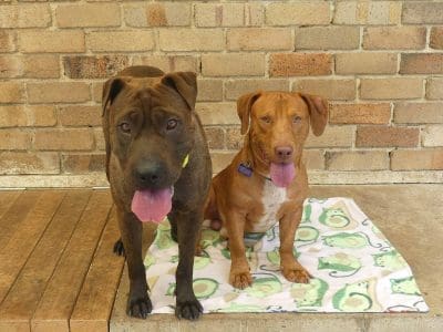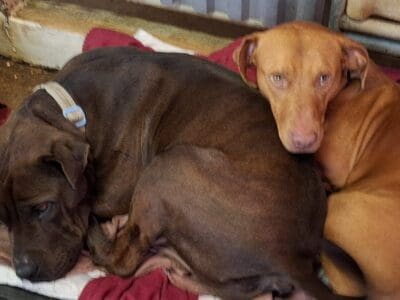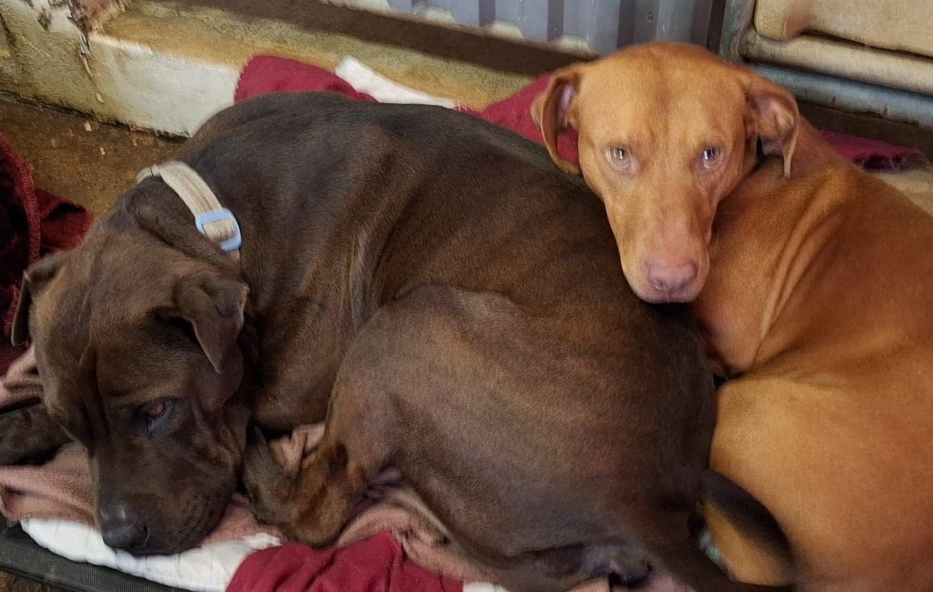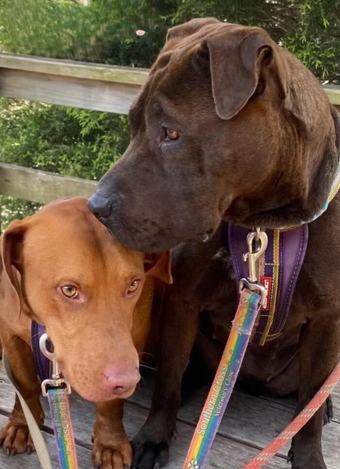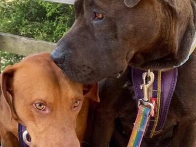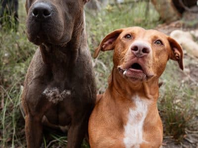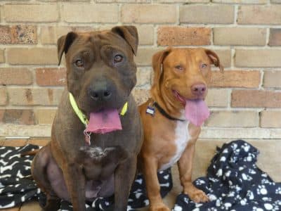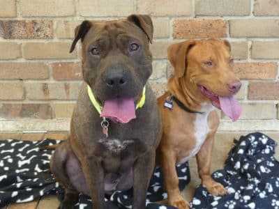 Bernadette and Howard came from the pound together. They are super friendly fun loving dogs. Our trainer says "Beautiful friendly dogs who are very sweet with kids. Both seek out company and cope really well with kid play and energy. Lovely family dogs." Bernadette is very anxious and will try and climb fences to find humans, so home-based workers are important. Bernadette weighs 26kg and Howard is 21kg. They both have smooth coats.