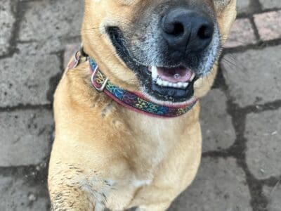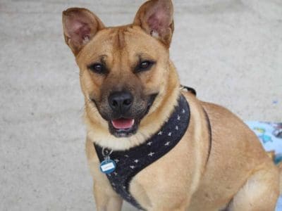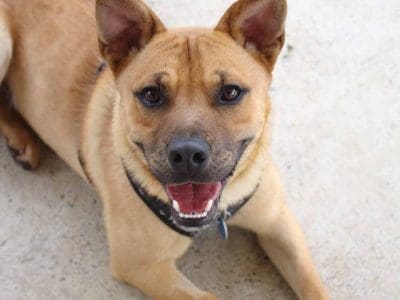 Alvin is a timid boy who gets frightened easily by sudden movement or noise. He thinks he is in trouble. Alvin gets spooked by sounds and strangers and then just wants to get back into the car, where he is comfortable. He is not reactive to dogs or people off site. He is currently undergoing training to improve his comfort zones. Alvin is an active boy who needs an experienced family to teach him to walk on lead calmly and give him basic obedience. He sits on command. Walkers say A little nervous at first but really warmed up to us over time. Beautiful dog, so sweet”, “Lovely dog”, “Reactive to other dogs, was scared of running kids”, “Anxious puppy but seemed very kind and eager for walk”, Great little personal trainer - was like a machine today! Sweet boy. Didn't mind stopping when asked to heel. He would love a good run or fast jog. which I didn't expect! easily spooked. Likes calm gentle handling. Looks to me for guidance. He has a short coat and weighs 17.6kg.
