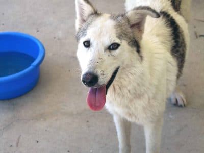 Arya is one of the many huskies that we rescued from a hoarding situation. They were living in filth and had to fight for the small amounts of food that were thrown to them. The dogs have had little or no social engagement with humans and know nothing about a routine, living in a house or walking on lead. They all need patient experienced owners.