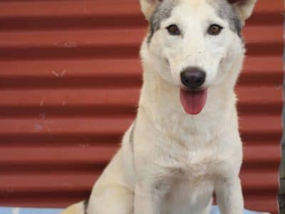 Arya is one of our shyer huskies who still is not keen on walking on lead and shy of human affection. She came in weighing 10.6kg but is now is 18.1kg. Walkers say: “Walked well, didn’t want to be touched”. She is so much more confident when she has Leia by her side and they want to be adopted together.