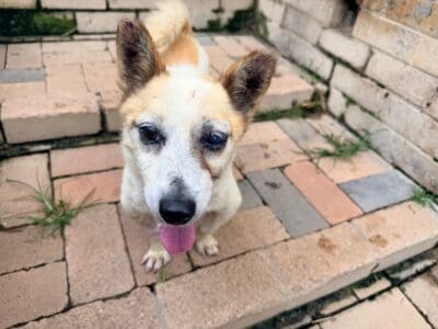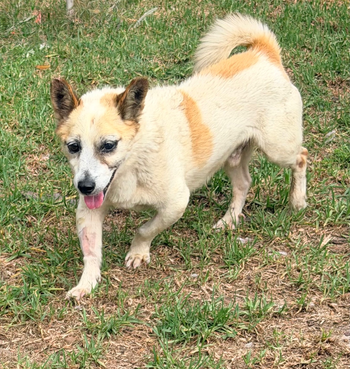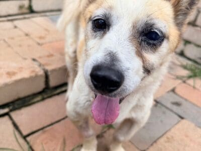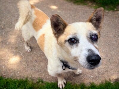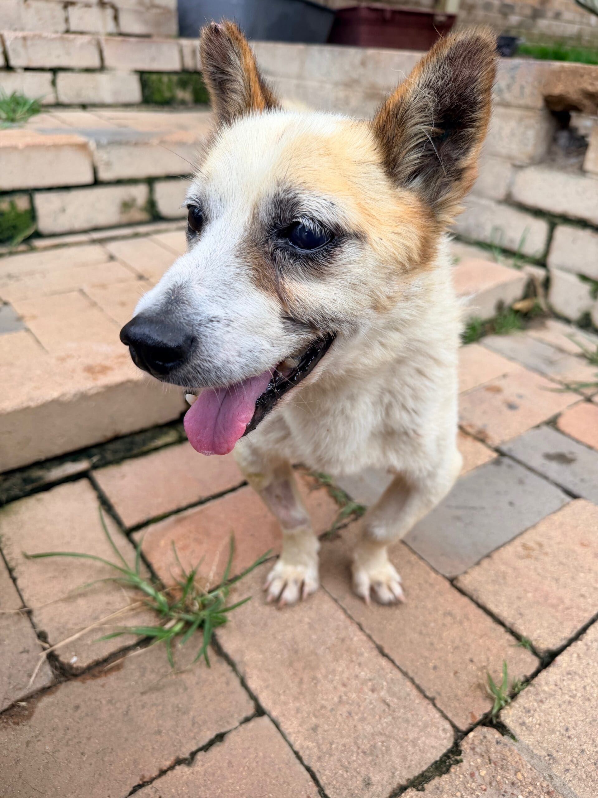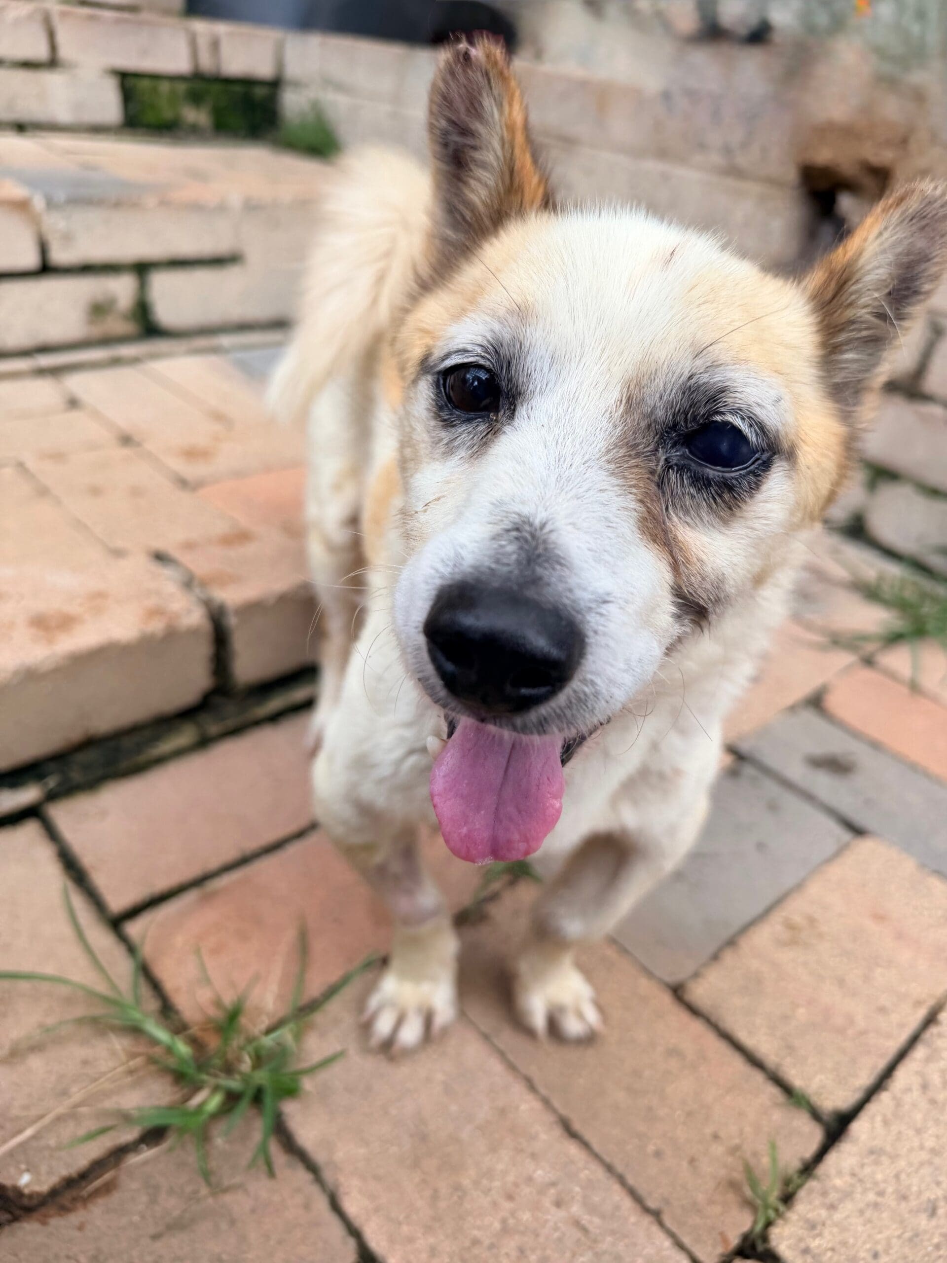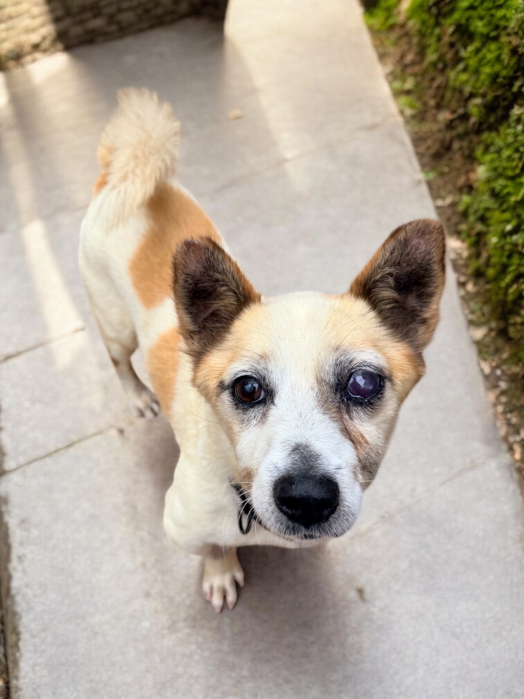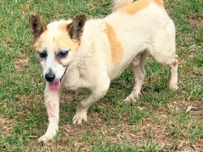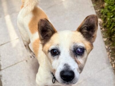 Charlie is a very sweet old man who is very friendly with people and easy to handle and very dog social with other small dogs. Charlie has a dull dry coat, bad teeth and some mild arthritic changes are seen in his joints upon x-rays. Charlie was missing 15 teeth and had just had 10 more extracted. The biggest concern for Charlie has been a bulging left eye with ulcer (visible in the pic above). Our vets have suggested the eye needs to be removed as he is in pain.
