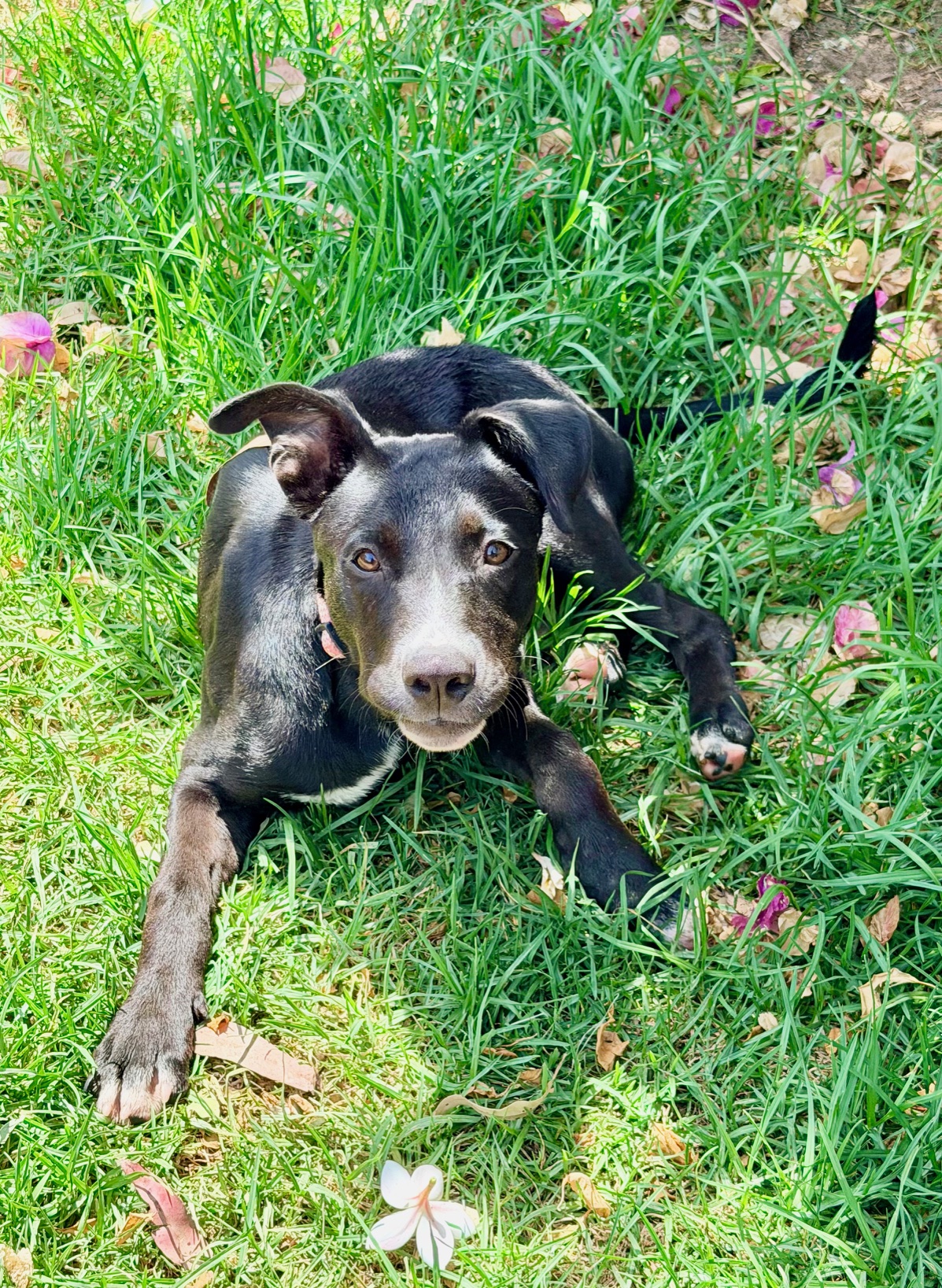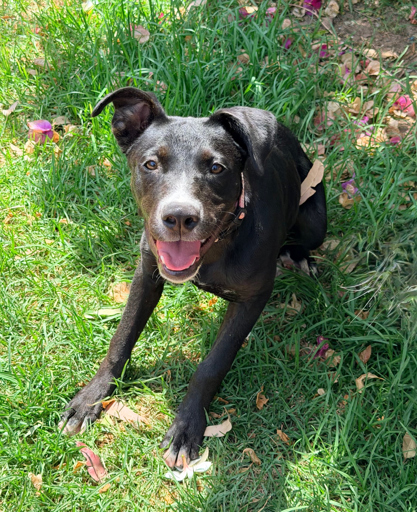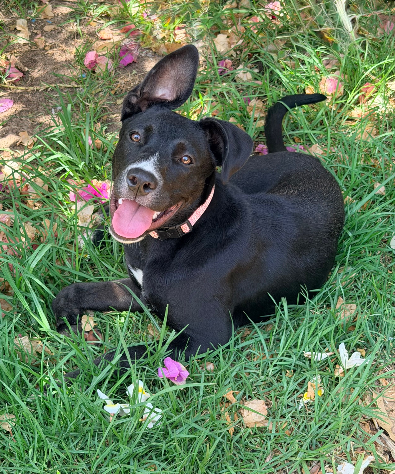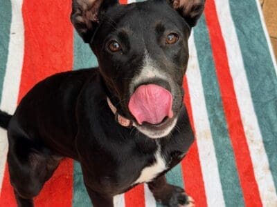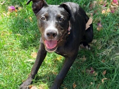 Cherry is a bright smart girl with loads of personality and happiness. Cherry has a lot of kelpie in her, so she is very quick to learn new tricks and routines. Cherry would do best with another friendly calm but playful dog to be her mentor. Cherry is nervous of men and wary of strangers. Cherry walks well on lead and knows basic command, sit, stay, drop. She has a short coat and weighs 17.4kg.