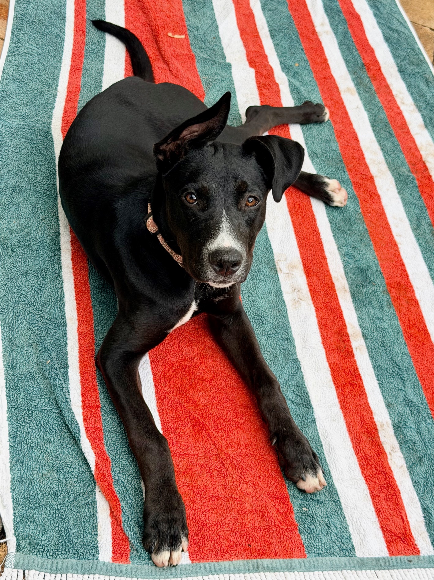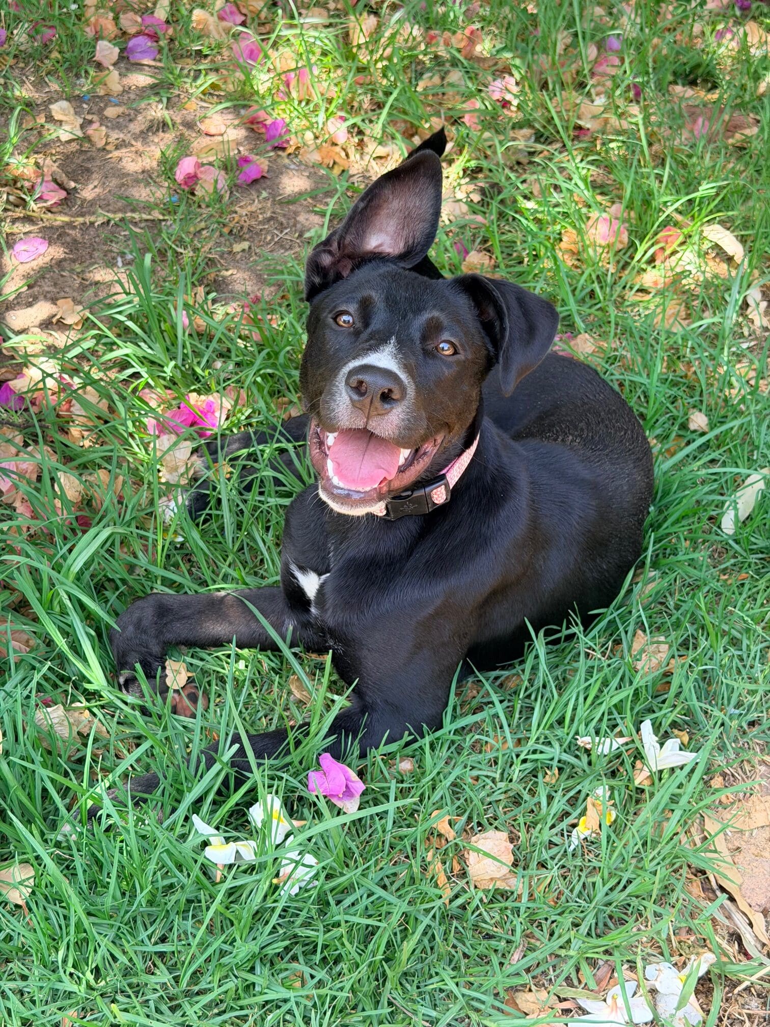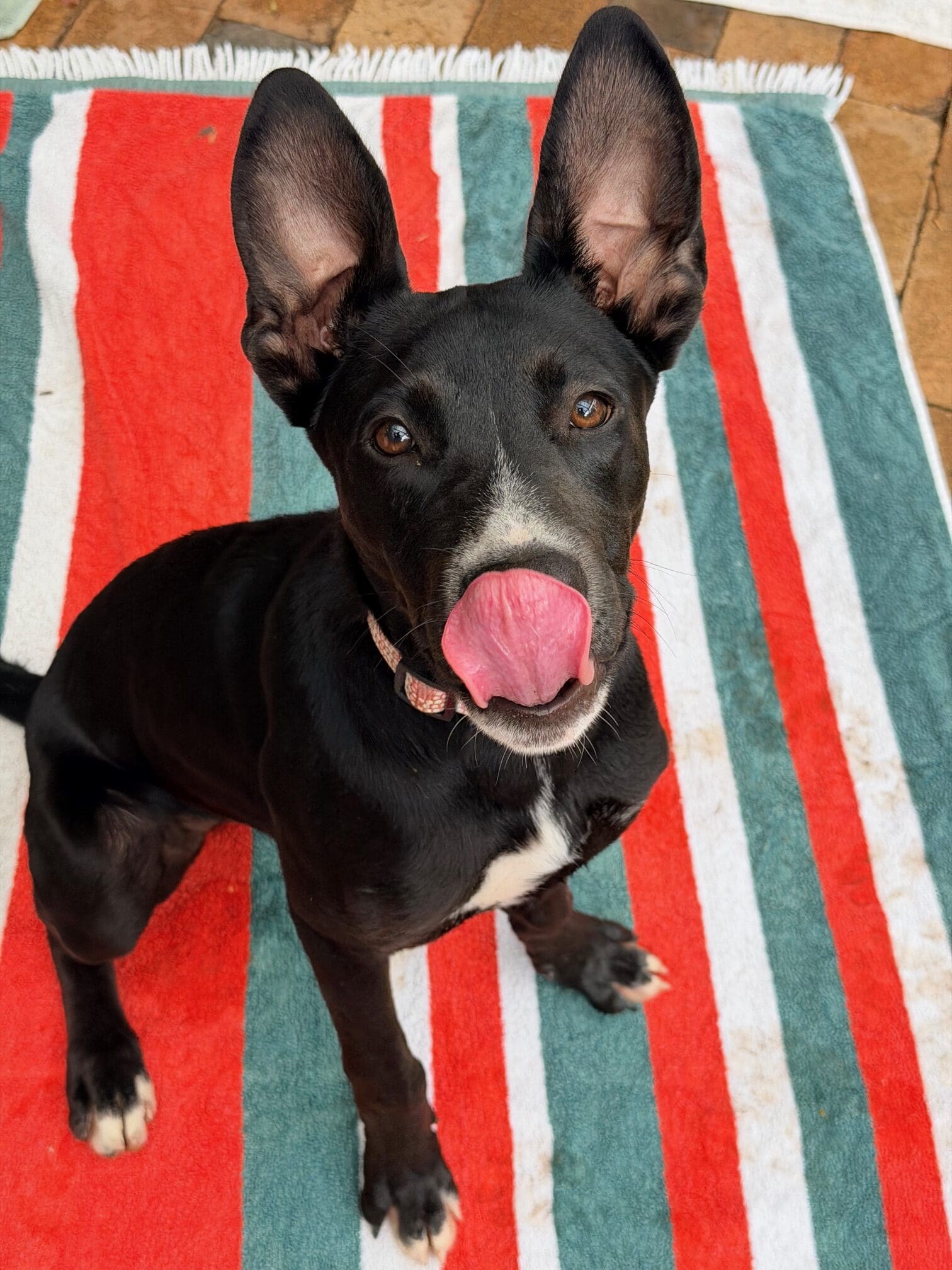 Cherry is a bright smart girl with loads of personality and happiness. Cherry has a lot of kelpie in her, so she is very quick to learn new tricks and routines. Cherry would do best with another friendly calm but playful dog to be her mentor. Cherry is nervous of men and wary of strangers. Cherry walks well on lead and knows basic command, sit, stay, drop. She has a short coat and weighs 17.4kg.