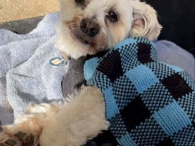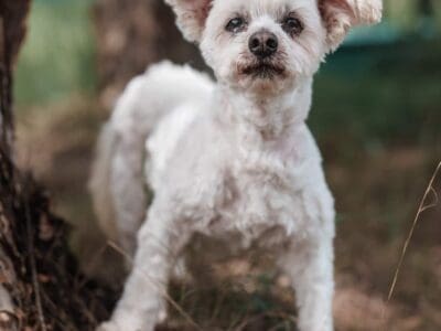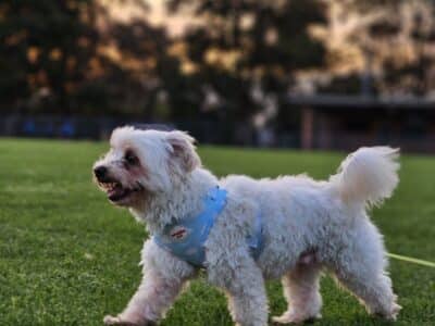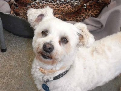 Dezzy is a very soft gentle boy once he knows you however he is not friendly with strangers and can nip. He is very social with other dogs and is easy to groom. Dezzy walks well on loose lead and pays no attention to passing dogs or cars. Dezzy is not fond of being around men or children and we believe he has been in a home with domestic violence. He would be best suited to a single female household where someone is home most of the time. Dezzy does not cope being left alone. He barks at strangers or people near the fence. He is not good with birds nor cats. He has a non-shedding coat and weighs 5.6kg.