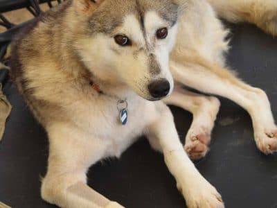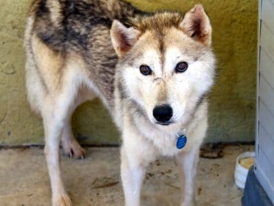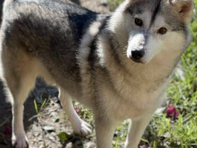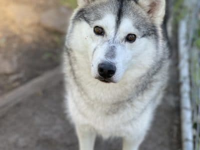 Echo is one of the many huskies that we rescued from a hoarding situation. They were living in filth and had to fight for the small amounts of food that were thrown to them. The dogs have had little or no social engagement with humans and knew nothing about a routine, living in a house or walking on lead. Echo like all huskies has an undercoat that sheds seasonally and needs lots of brushing. He weighs 17.0kg and is still a bit underweight.