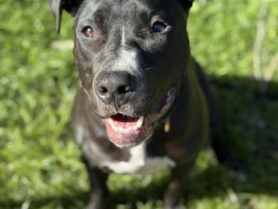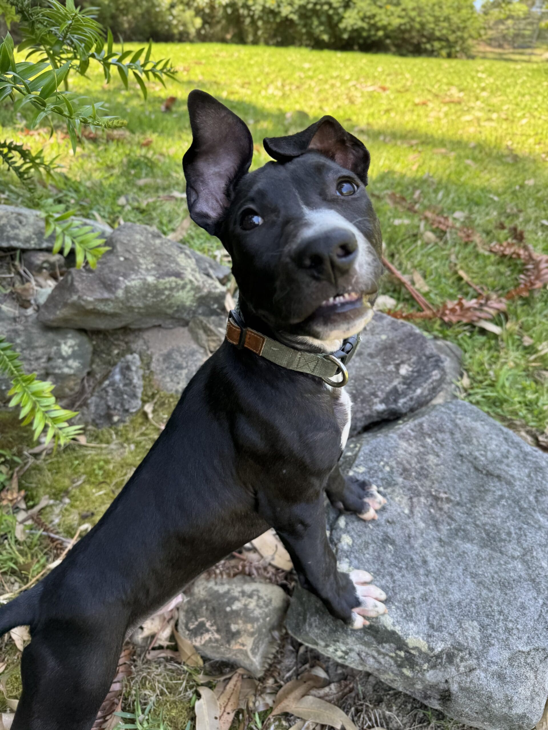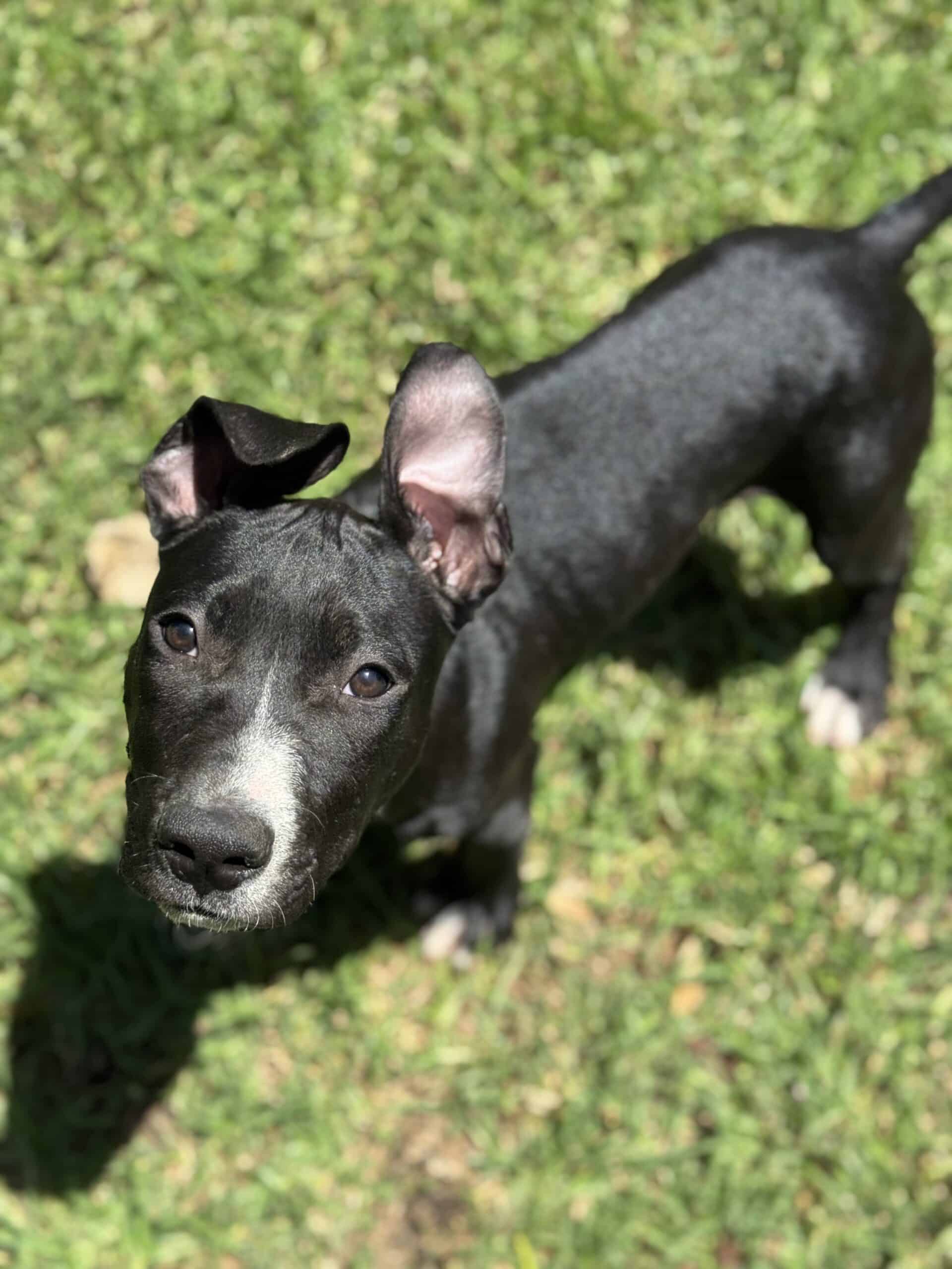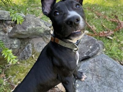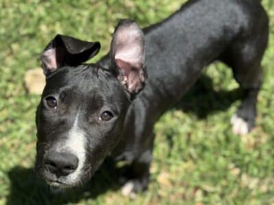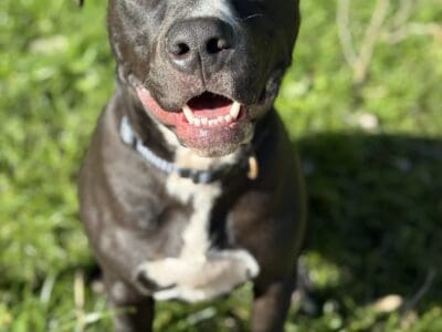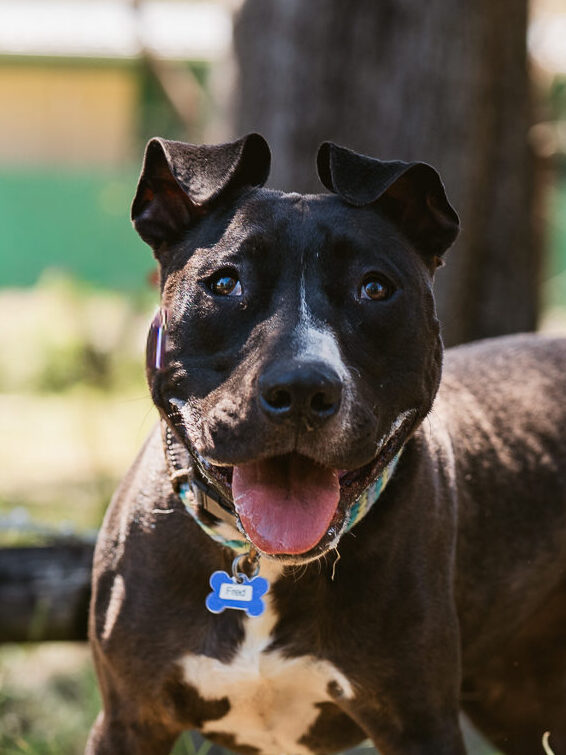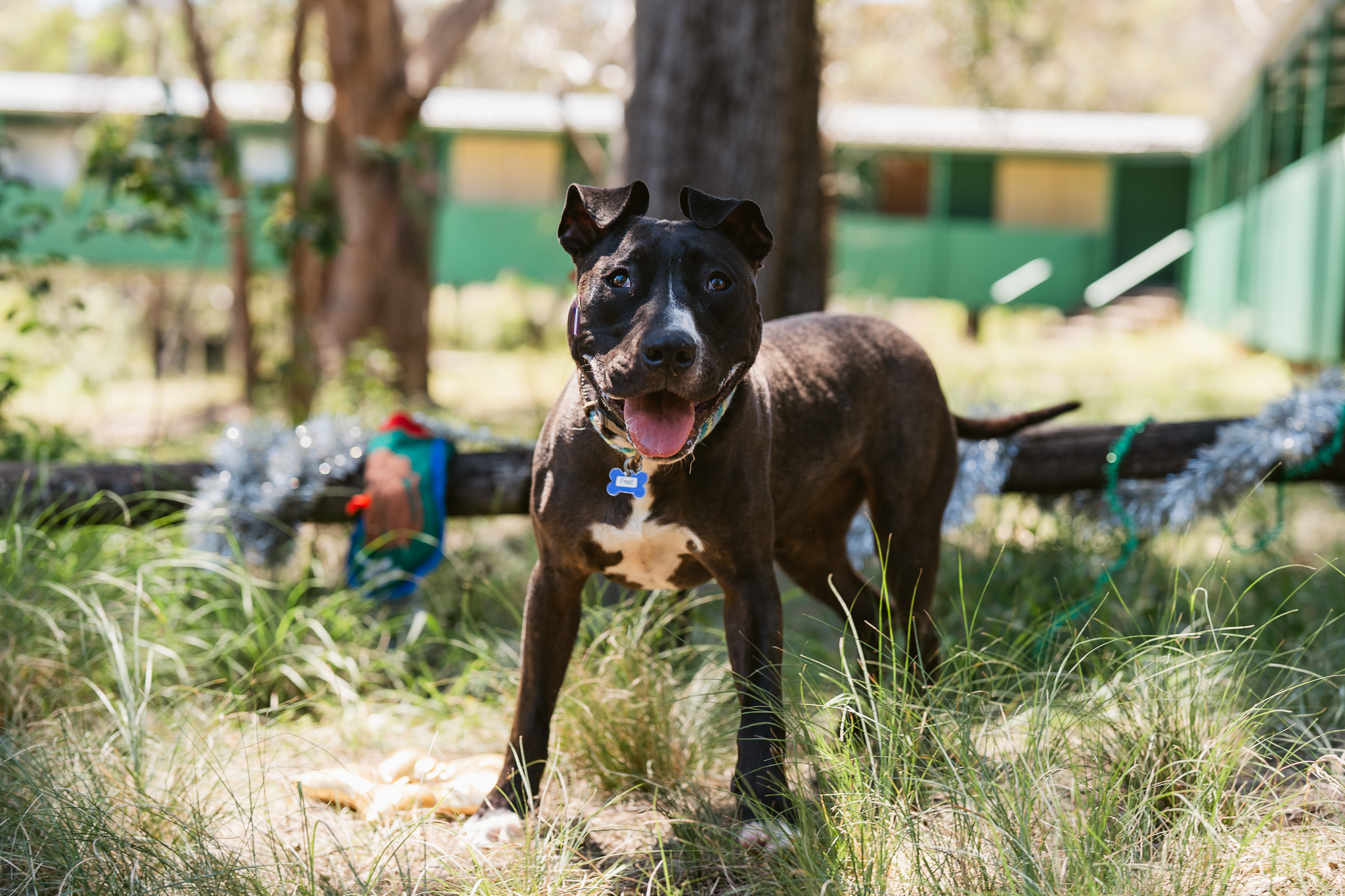 Fred and Barney, named after the Flintstones, are sweet energetic brothers who came from the pound as small pups and Barney has now been adopted. Fred is more the leader and has a more confident nature. Fred has loads of energy and is looking for an active sporty family who will train him and involve him in family activities. Fred is social with other young medium dogs and just loves to play with them. Fred is getting some lead training and is doing well. He sits well. Fred has a short coat and he weighed 16.1kg when he was 17 weeks. It is likely he will grow to around 25kg when fully grown.