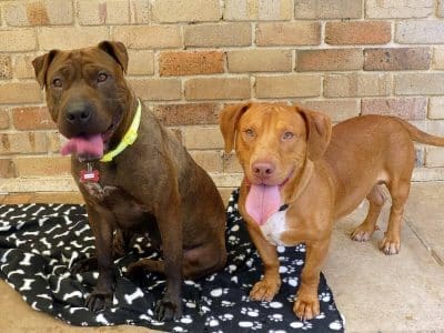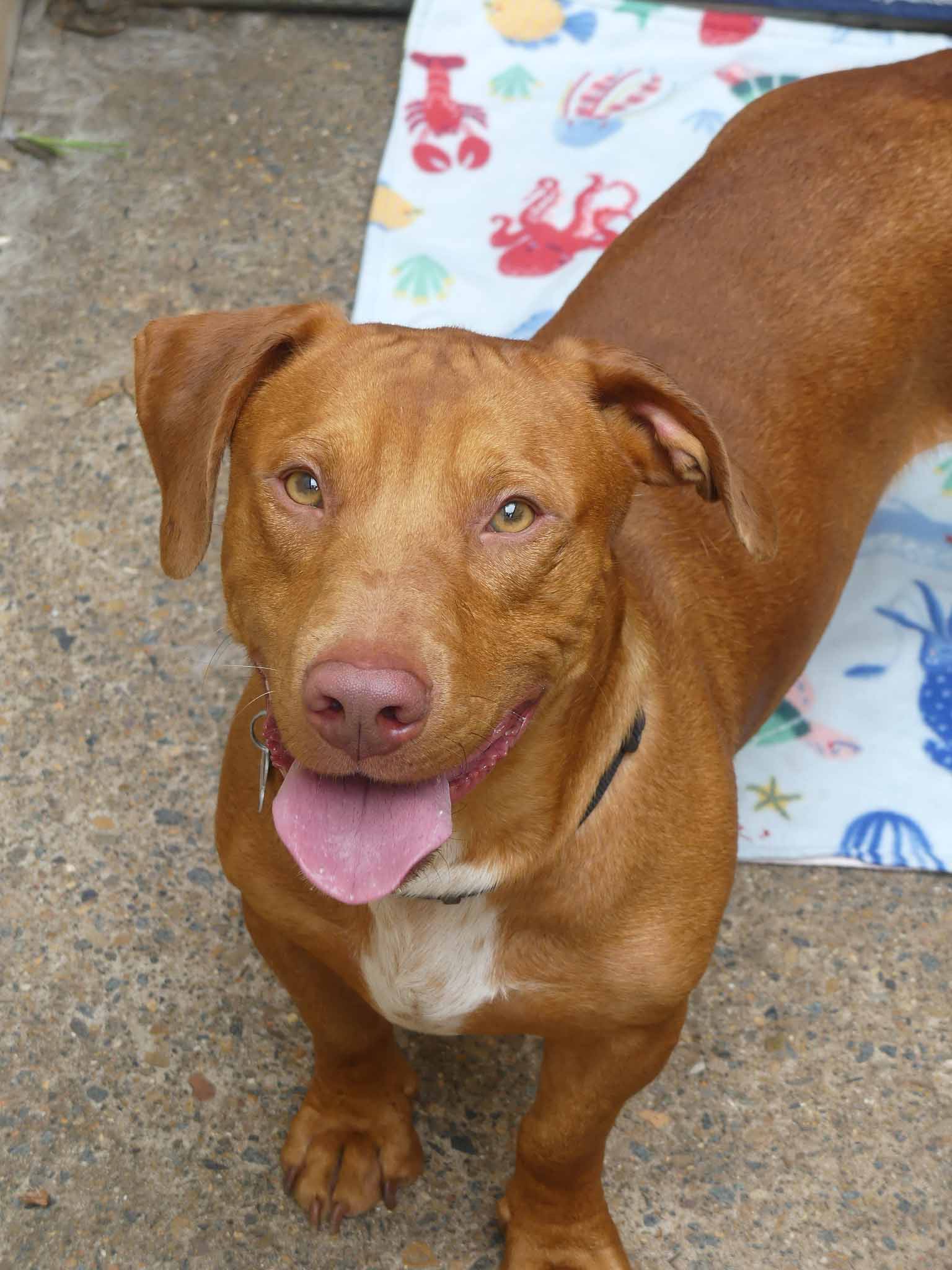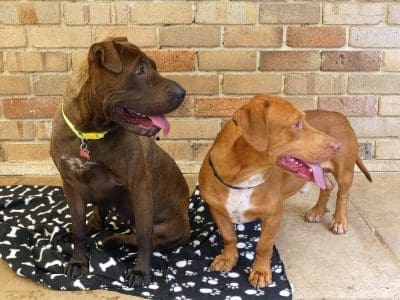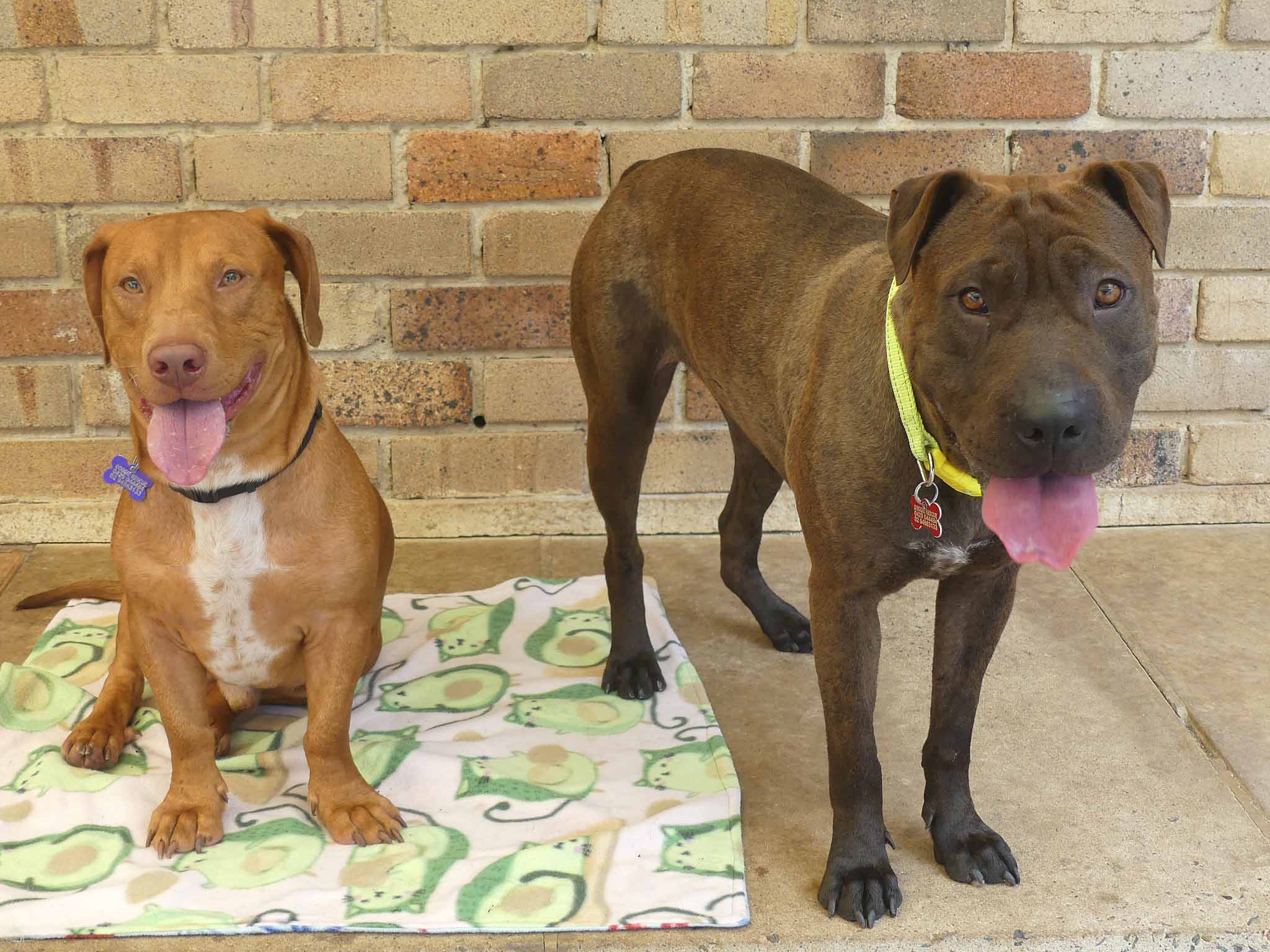 Bernadette and Howard came from the pound together. They are super friendly fun-loving dogs. Our trainer says "Beautiful friendly dogs who are very sweet with kids. Both seek out company and cope really well with kid play and energy. Lovely family dogs." Bernadette is very anxious and will try and climb fences to find humans, so home-based workers are important. Bernadette weighs 26kg and Howard is 21kg. They both have smooth coats. For details please see our pairs list on our web site.