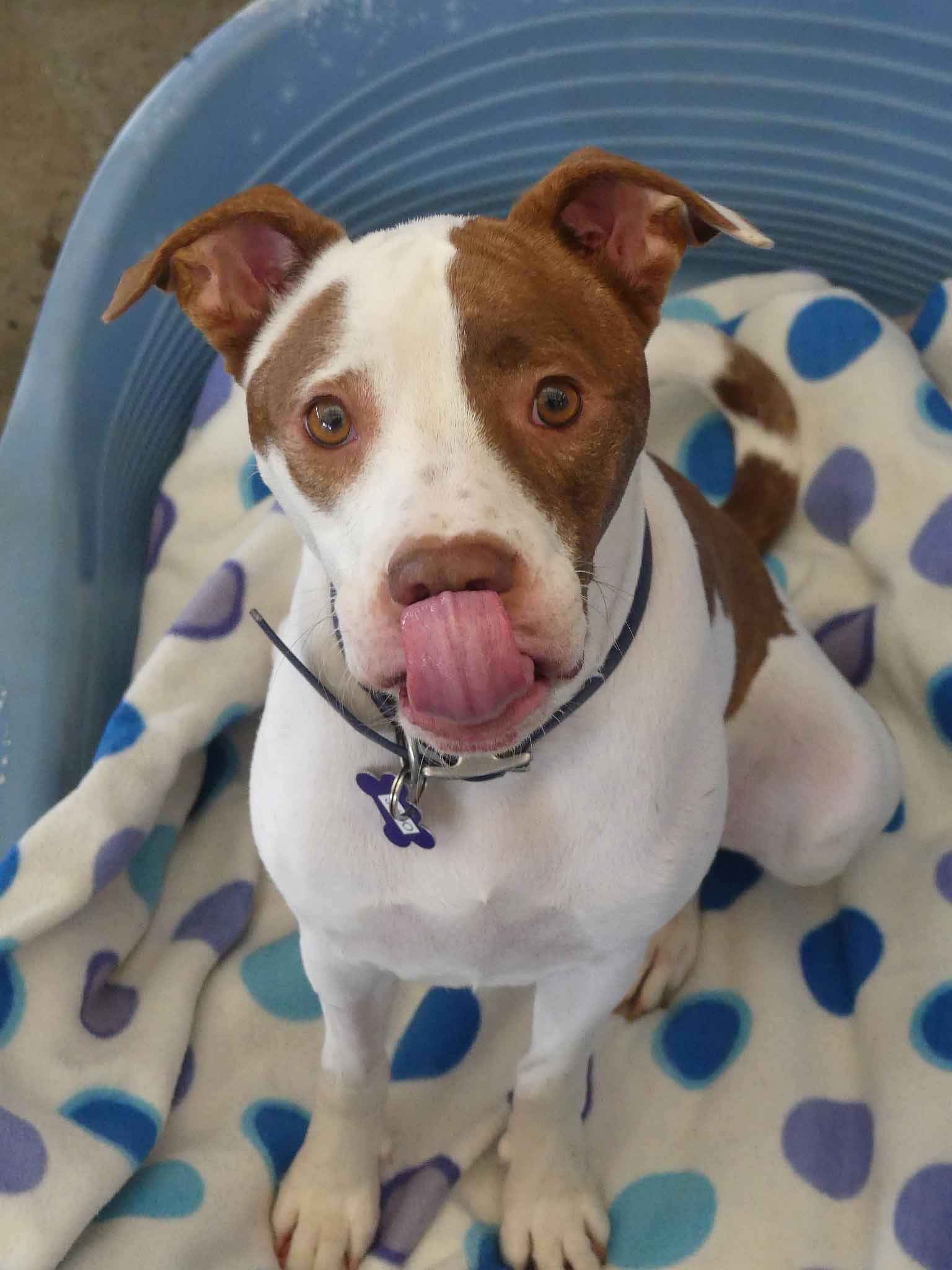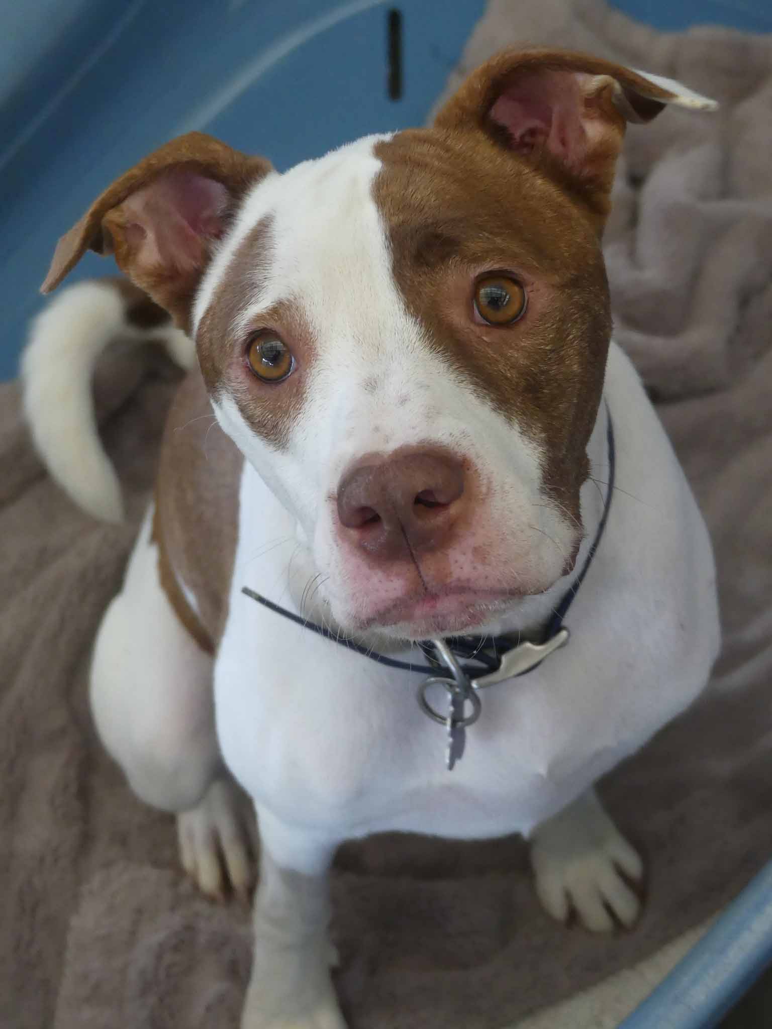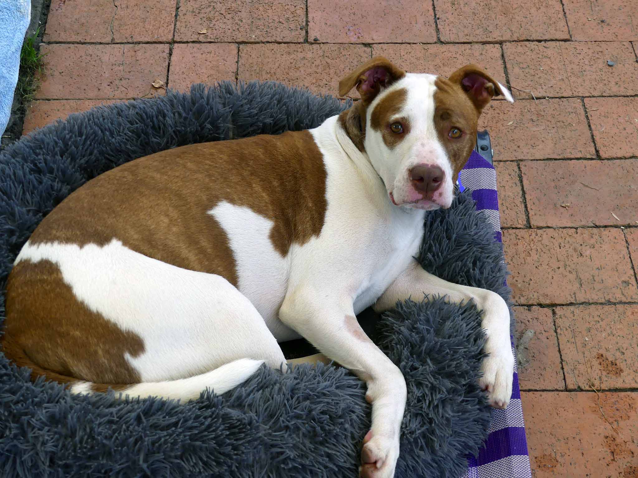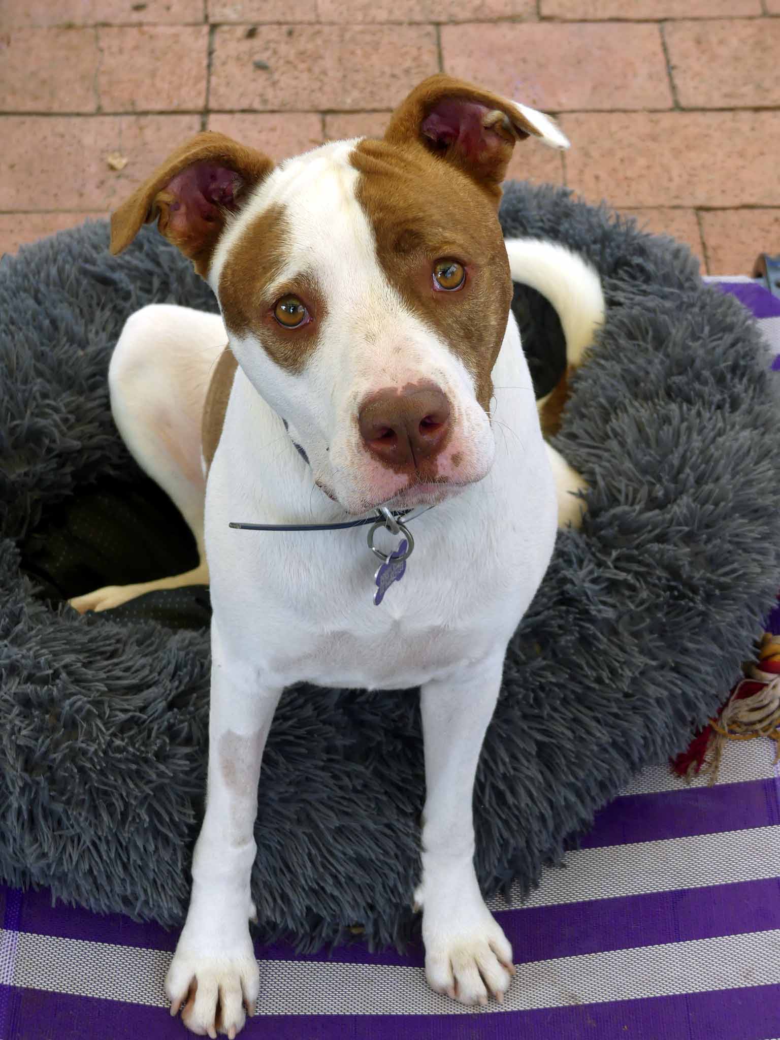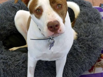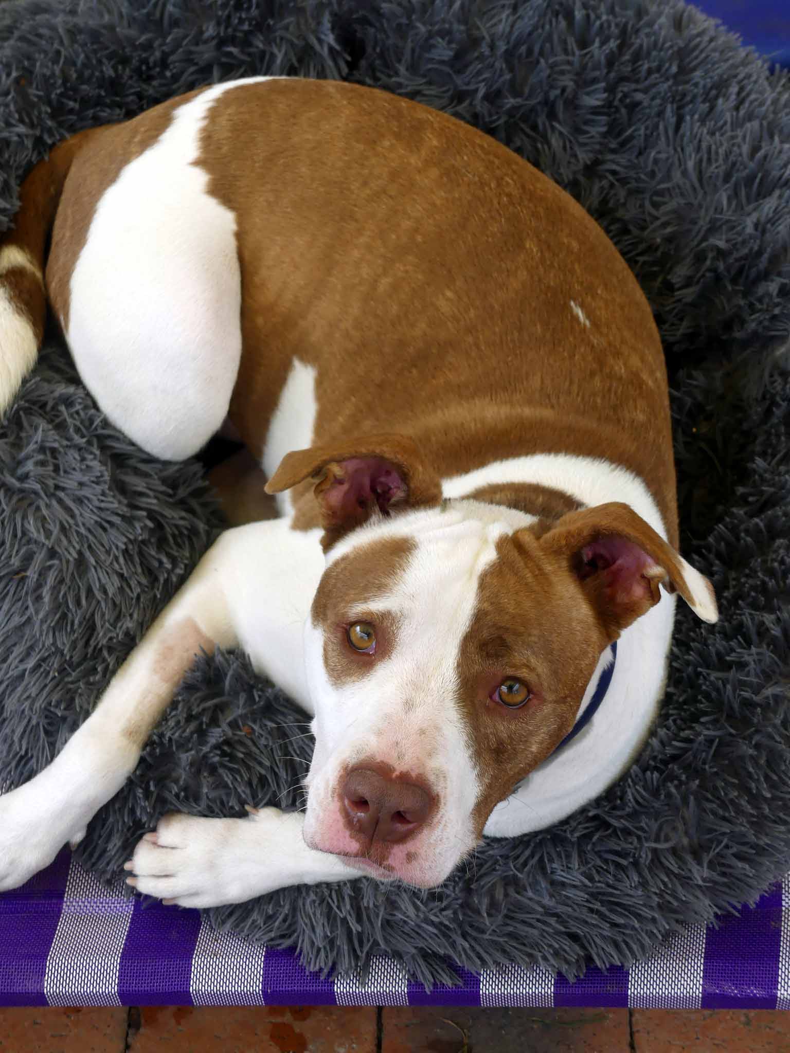 Juno is a very sweet sensitive girl who is social with other dogs her size. She is a bit scared to walk at the shelter and you can tell a lot of things are new to her. She does enjoy being patted and cuddled and even likes belly rubs with volunteers. Our trainer says "Juno loves kids and is pretty gentle though she can get a bit mouthy especially when aroused. Beautiful dog. She would suit families with kids 12+yo or experienced dog owners with slightly younger kids." She is not keen to be picked up. She is a little sweetheart! She has a short coat and weighs 21kg.