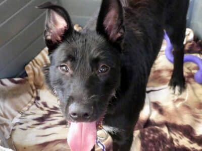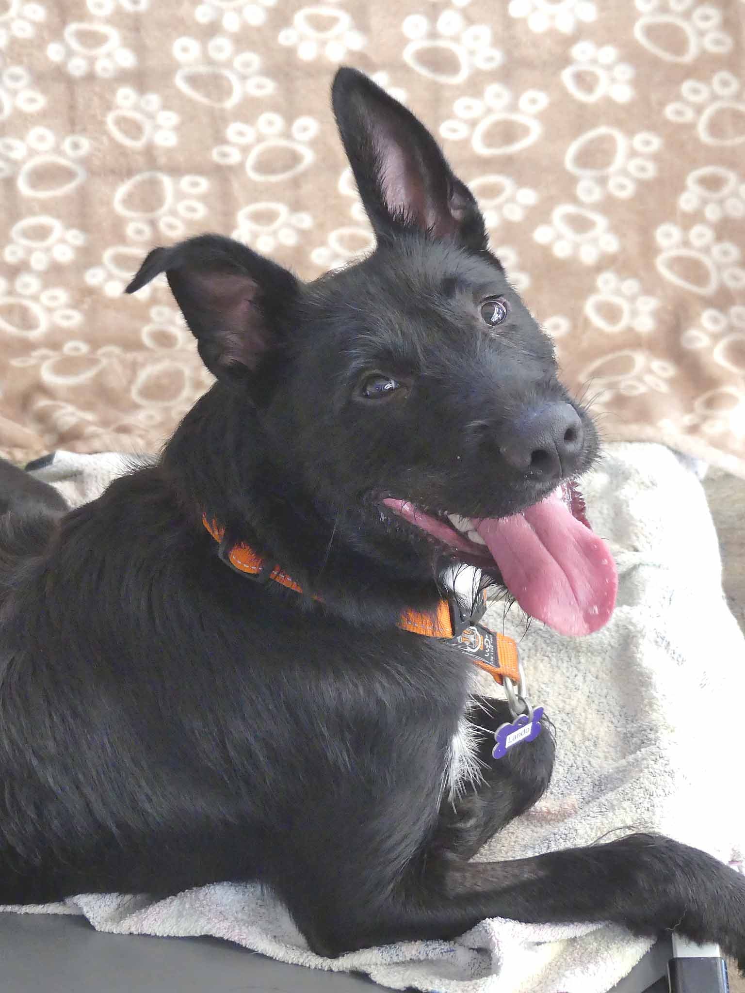 Lando, named after a Formula 1 driver, is a bright active boy. He loves his exercise but pulls on lead. He loves his treats and toys and is a very friendly engaging dog. He has a scruffy coat, typical of a wolfhound and weighs 23kg. He is looking for a fit active family who make him part of their outdoor activities. Lando can guard he food, so he needs to be fed away from other dogs.