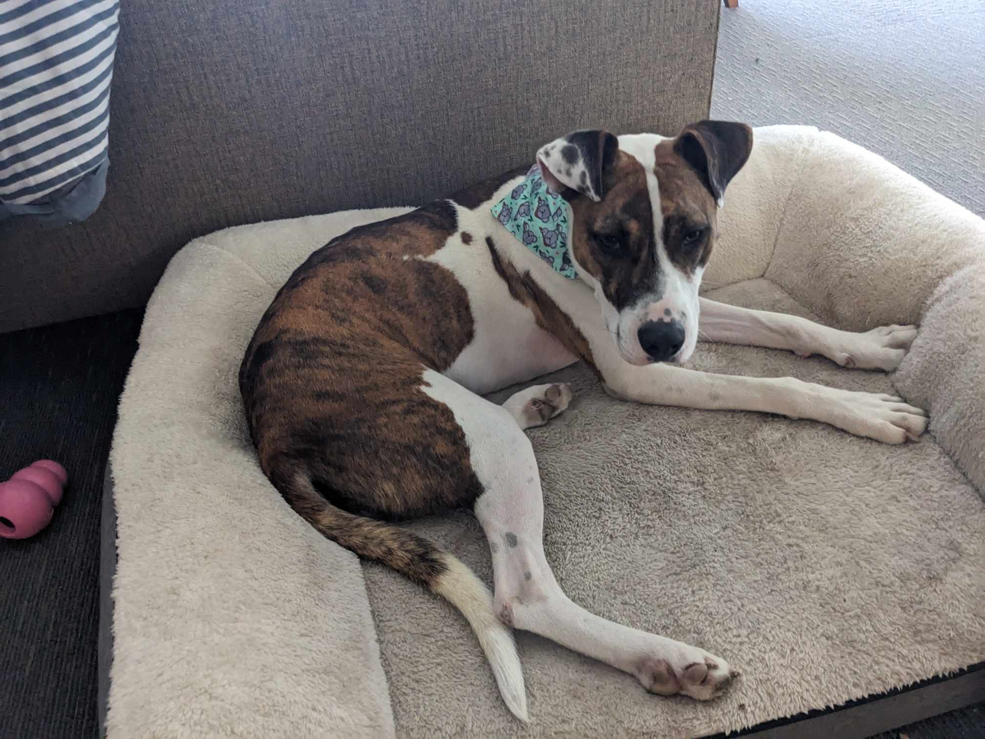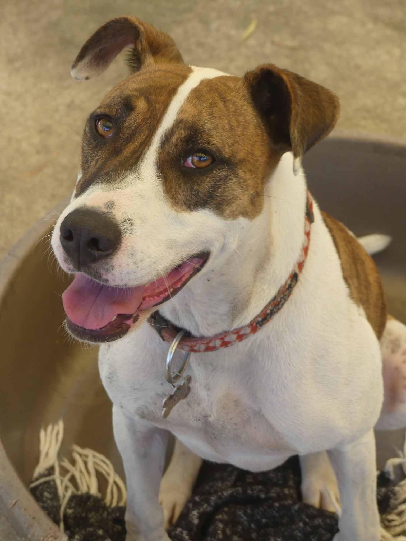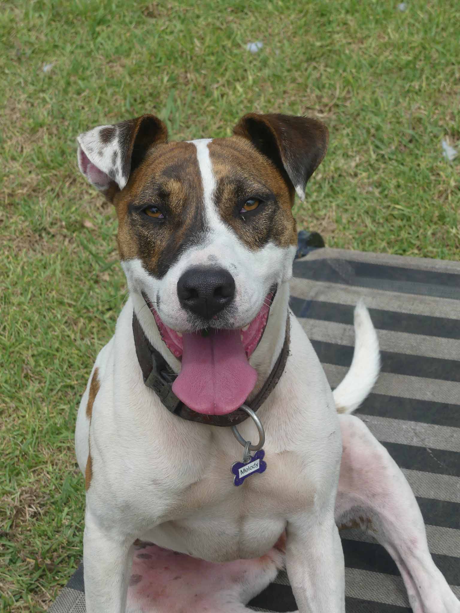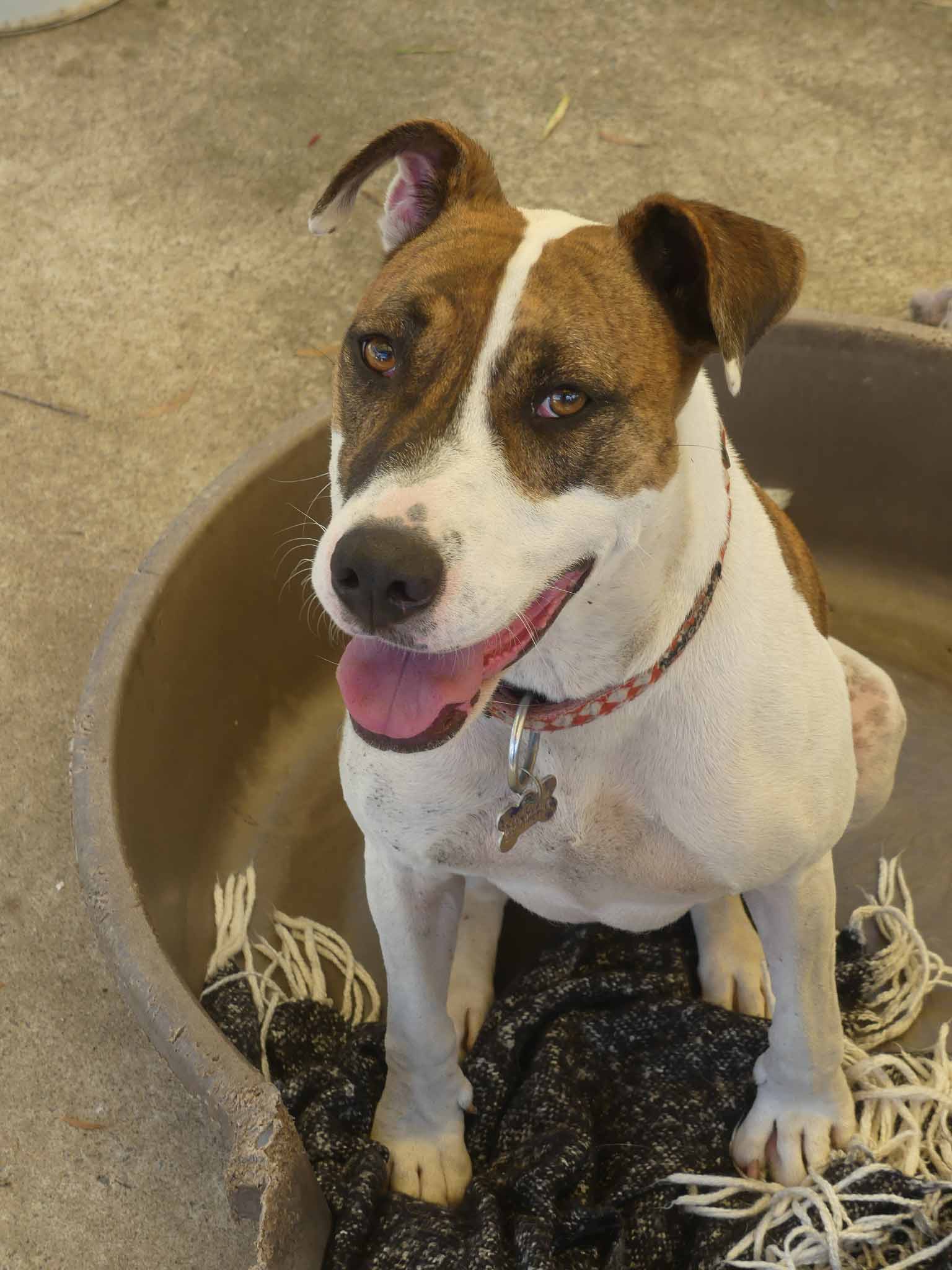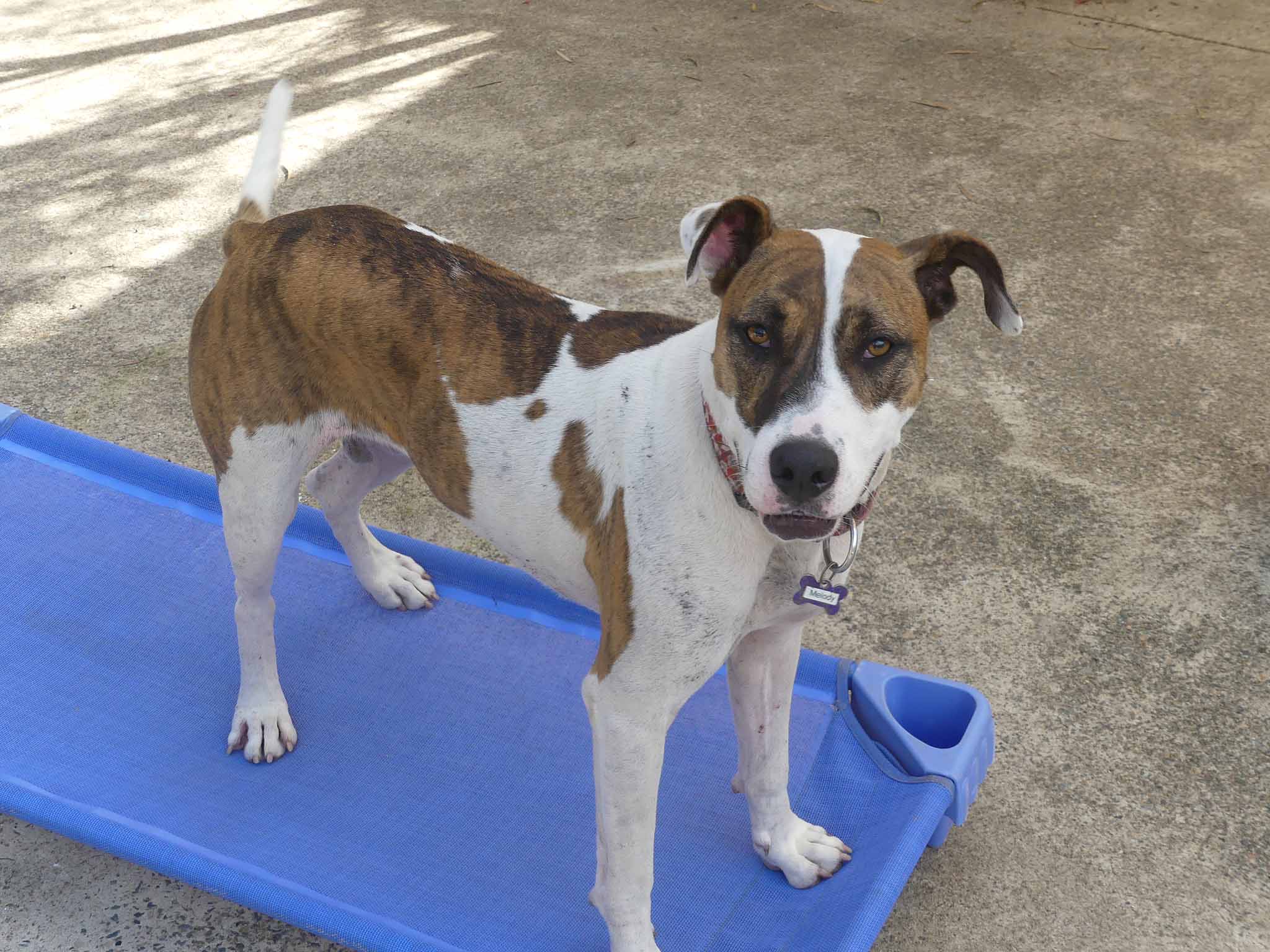 Melody is a super sweet but super shutdown girl who is looking for an experienced handler with a relaxed friendly dog to bring her out of her shell and develop her confidence. She is happiest with another friendly relaxed dog who can be her leader. At the pound she only hid at the back of her kennel in the crouched position, tail tucked and sometimes shaking. She was put on anti-depressants which we have weaned her off. Melody is still very shy but can be led on lead by people she knows. She has been gaining confidence and hanging out with some very happy friendly dogs at the shelter. She has a smooth coat and weighs 25kg.
