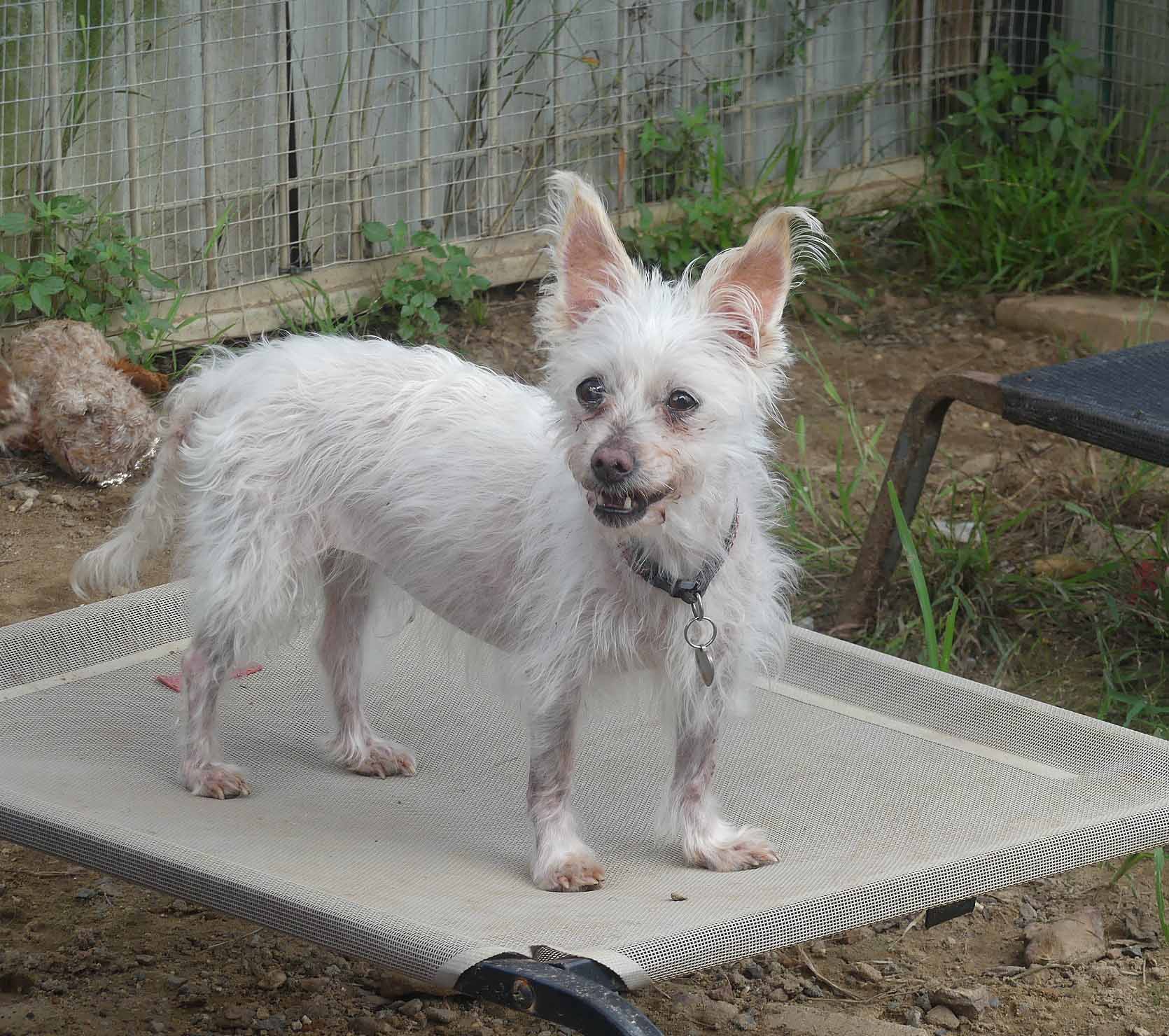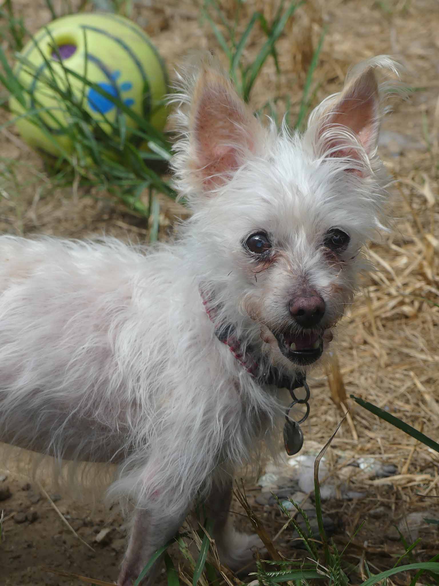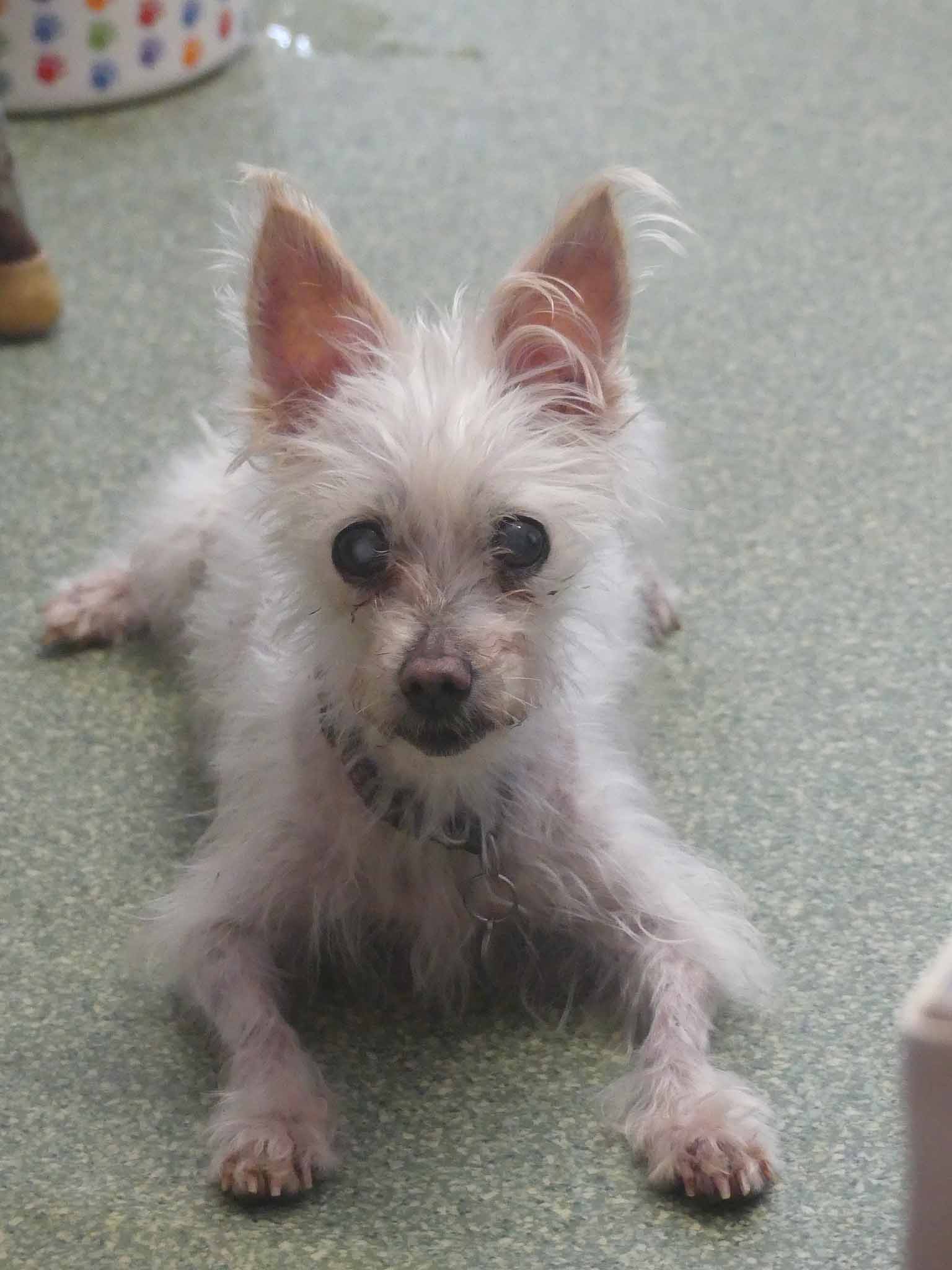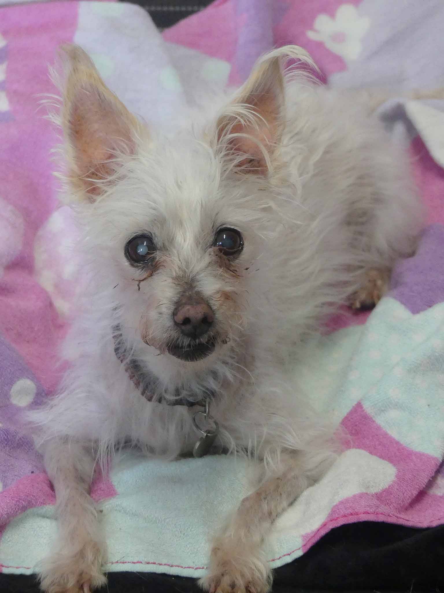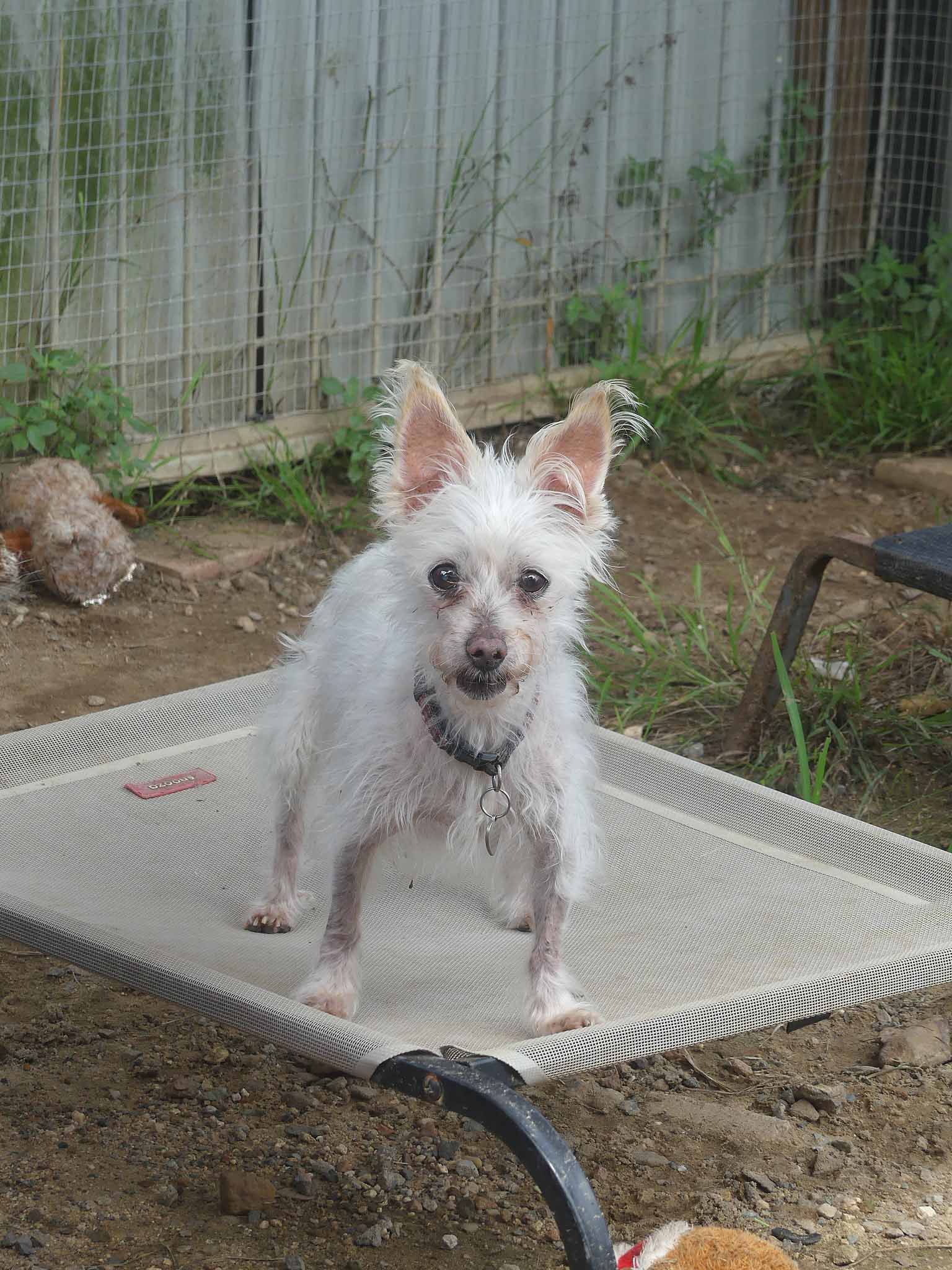 Mimi is a sweet but anxious girl who loves to be close to her humans. She is social with other small dogs and has lived with other small dogs in the past. She came from a deceased estate. Mimi has developed an auto-immune disease, Protein Losing Enteropathy, which is managed with a low-fat diet and a low dose of prednisolone. She loves her baths but needs an experienced patient groomer or needs clipping under sedation at the vets. She has a low shedding coat and weighs 3.8kg.