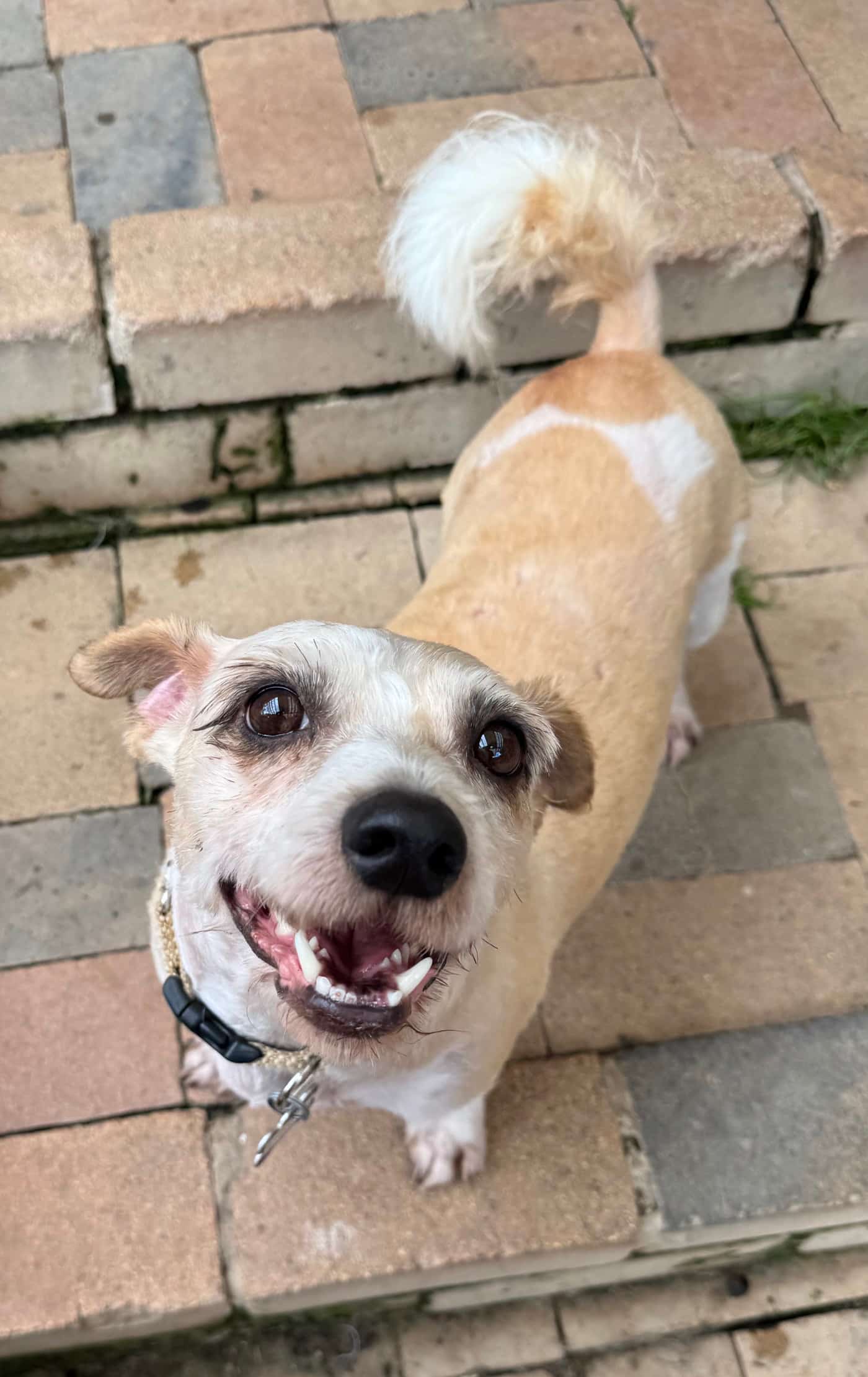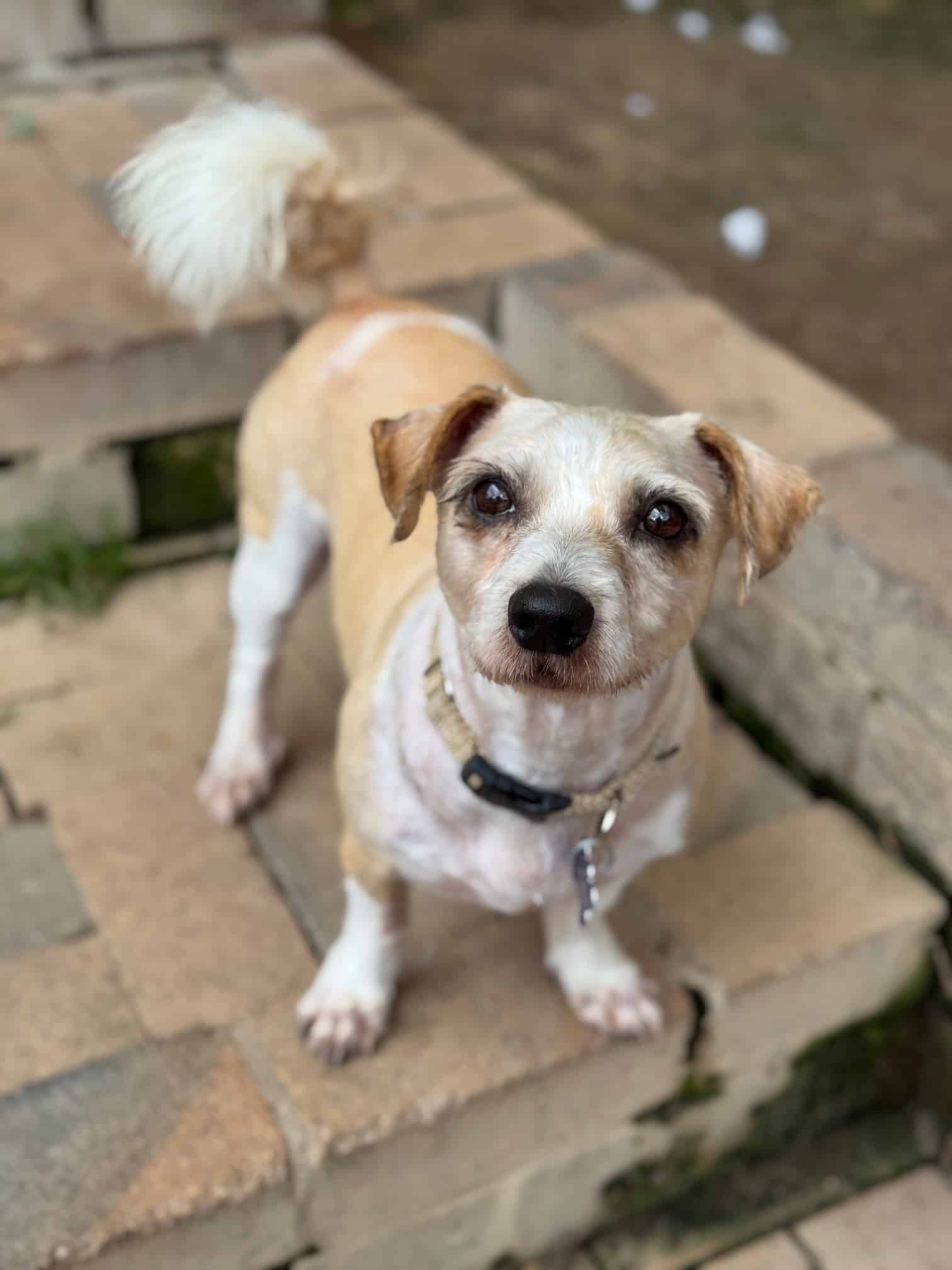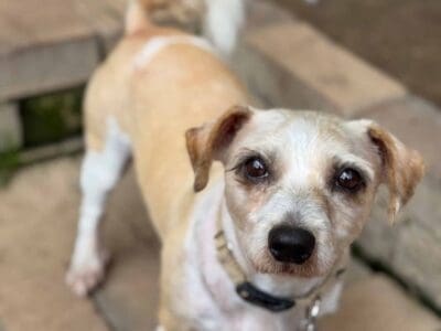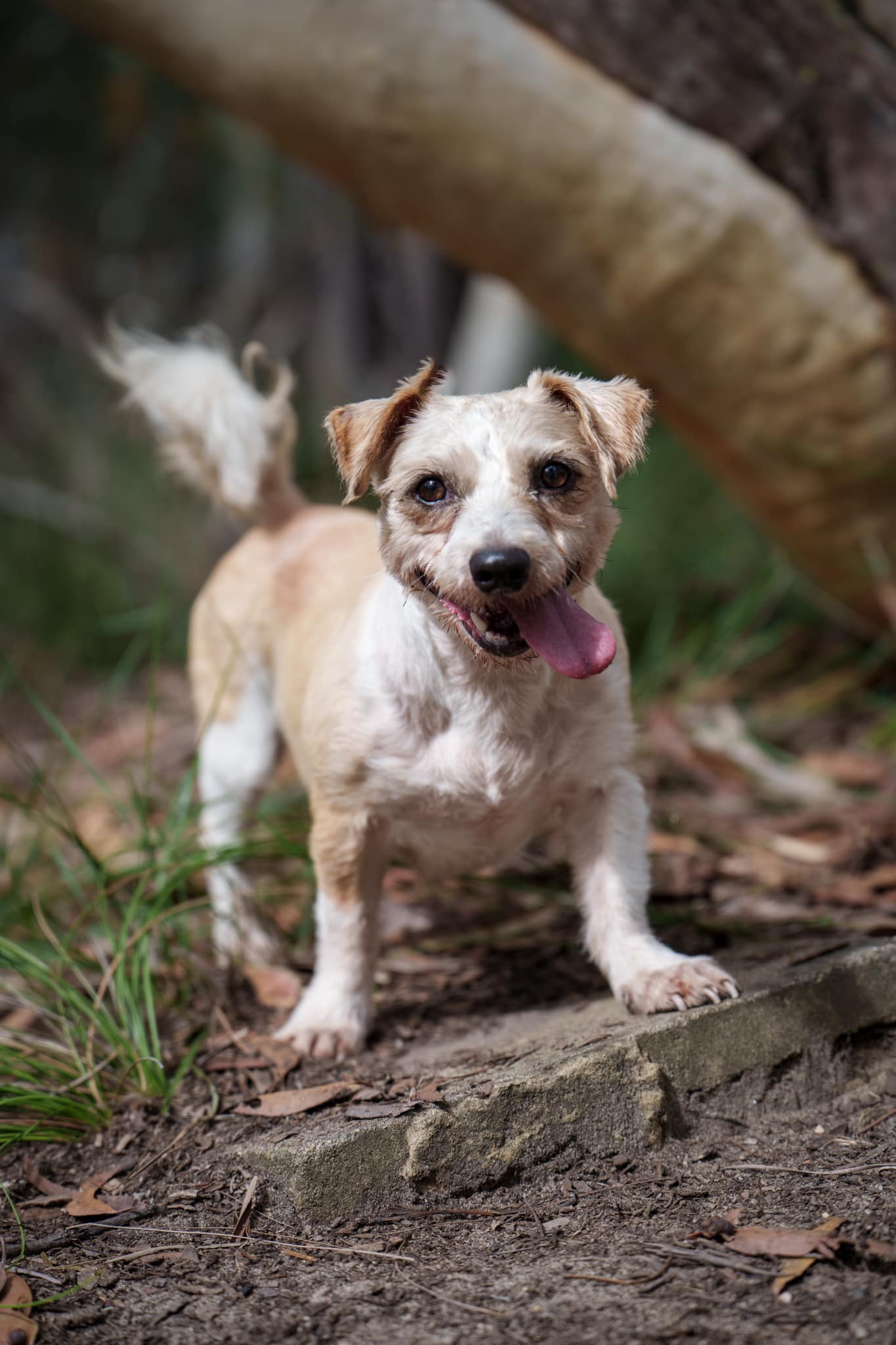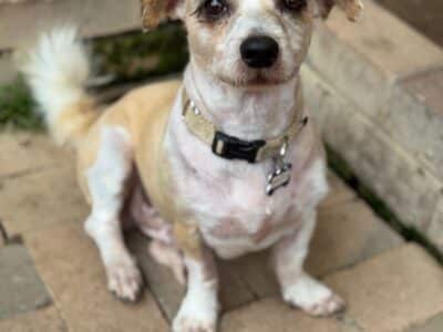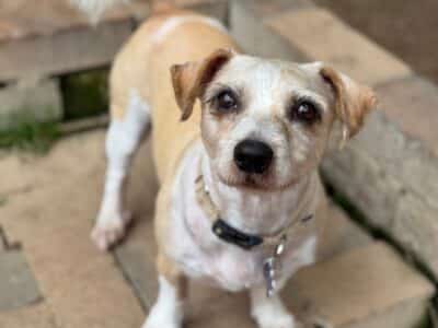 Mocha is an anxious but sweet affectionate boy when he knows you. Mocha sometimes forgets he has met people before so relationships take time to form. Mocha is a very active dog who loves playing with other young small dogs. He is quite agile and is typical of the Jack Russel breed. He social with a lot of small dogs but is not a fan of male Jack Russel types. Humans are very important to Mocha and he is quick to learn new routines and is very food motivated. Mocha was in a very neglected state when he came from the pound and they struggled to handle him at the pound. Mocha would do best in a single person household with someone has done some obedience training. He barks at people trying to leave but responds well to food rewards and obedience commands. Some of his behaviours suggest he has lived in a domestic violence situation in the past. He has a low shedding coat and weighs 10.3kg.