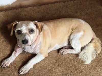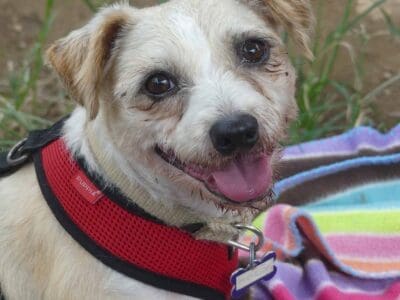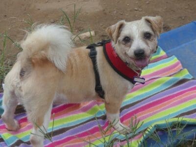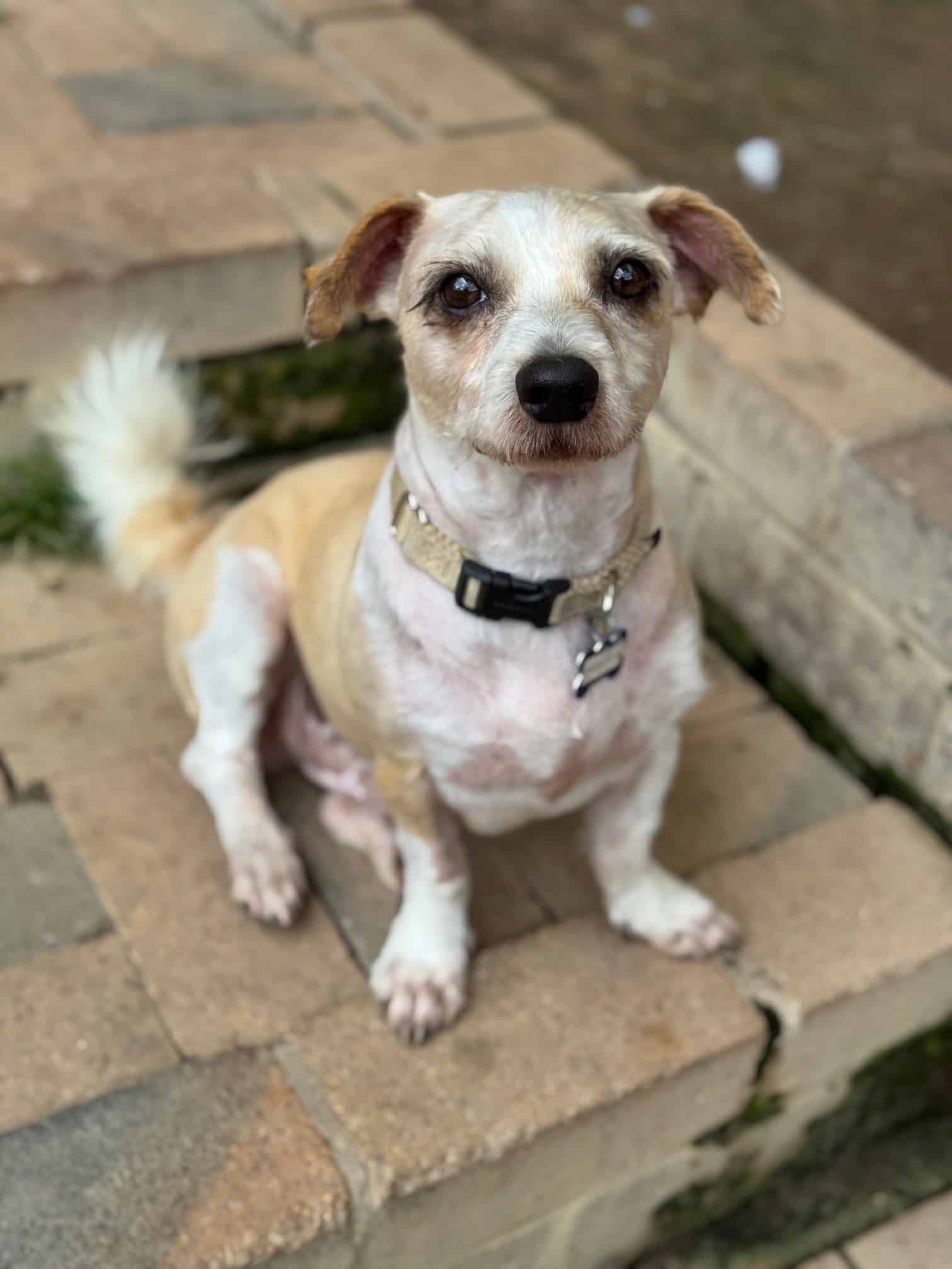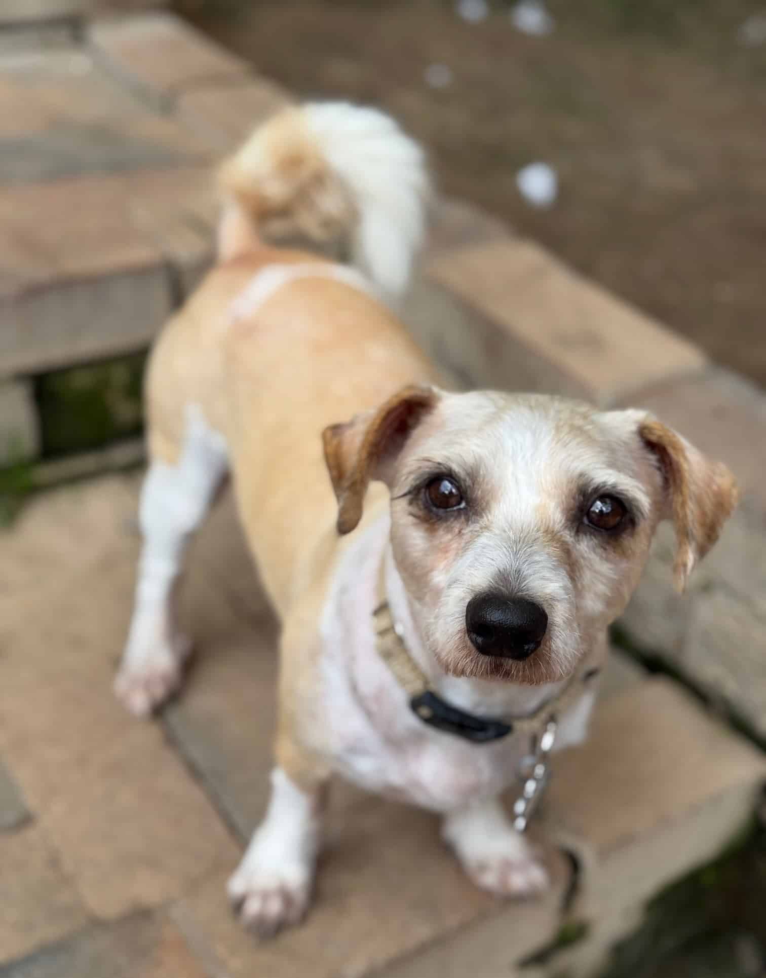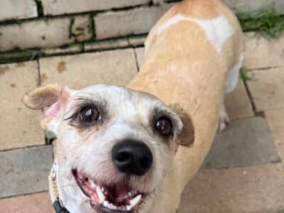 Mocha is an anxious but sweet affectionate boy when he knows you. Mocha sometimes forgets he has met people before so relationships take time to form. Mocha is a very active dog who loves playing with other young small dogs. He is quite agile and is typical of the Jack Russel breed. He social with a lot of small dogs but is not a fan of male Jack Russel types. Humans are very important to Mocha and he is quick to learn new routines and is very food motivated. Mocha was in a very neglected state when he came from the pound and they struggled to handle him at the pound. Mocha would do best in a single person household with someone has done some obedience training. He barks at people trying to leave but responds well to food rewards and obedience commands. Some of his behaviours suggest he has lived in a domestic violence situation in the past. He has a low shedding coat and weighs 10.3kg.