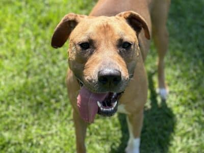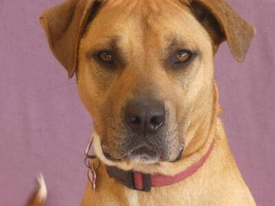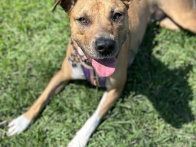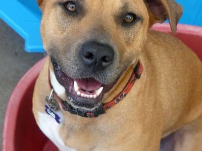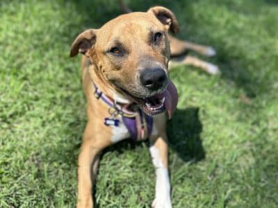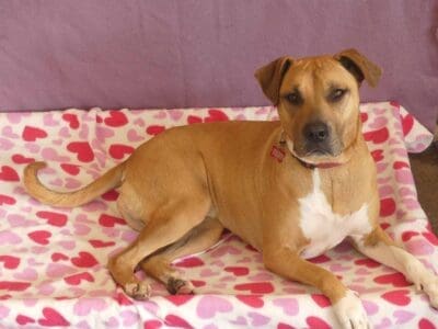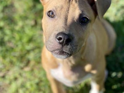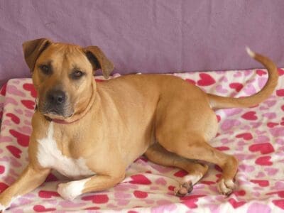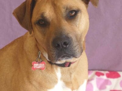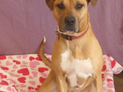 Our Grease themed pups, Sandy, Olivia, Frenchie and Danny were saved from a rural pound in very poor condition. Olivia is a mixed working breed pup who needs a lot of exercise and stimulus. She is suited to a family where someone is home a lot to teach and guide her. Our trainer says she suits a family with older children who are used to active dogs. Our trainer says "Olivia prefers calm quiet children and suits 10+yo. She is a little less confident than her sister Frenchie." Olivia has a short coat and weighs around 25kg.