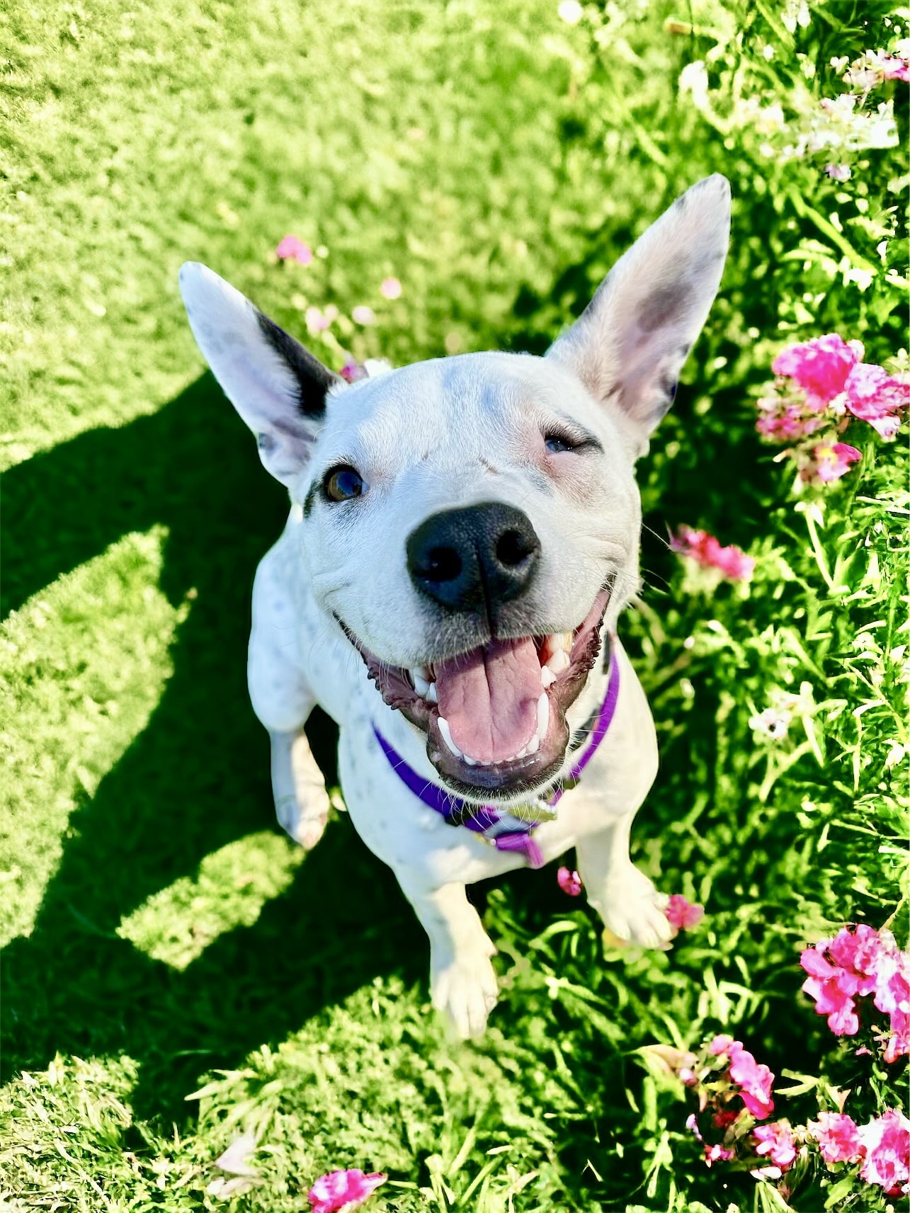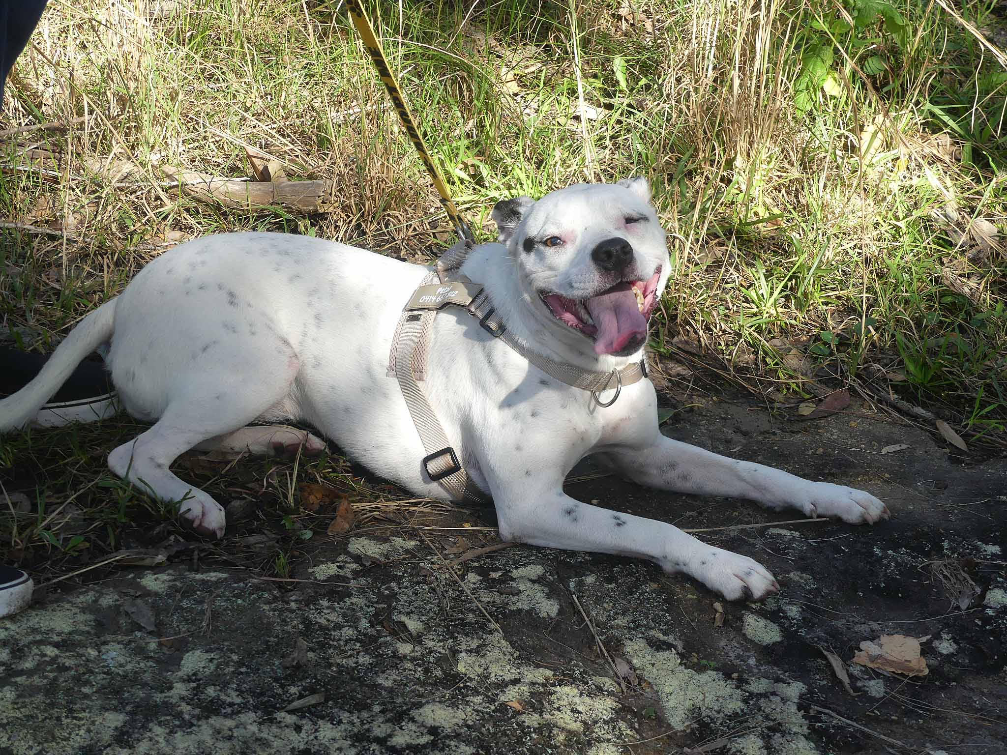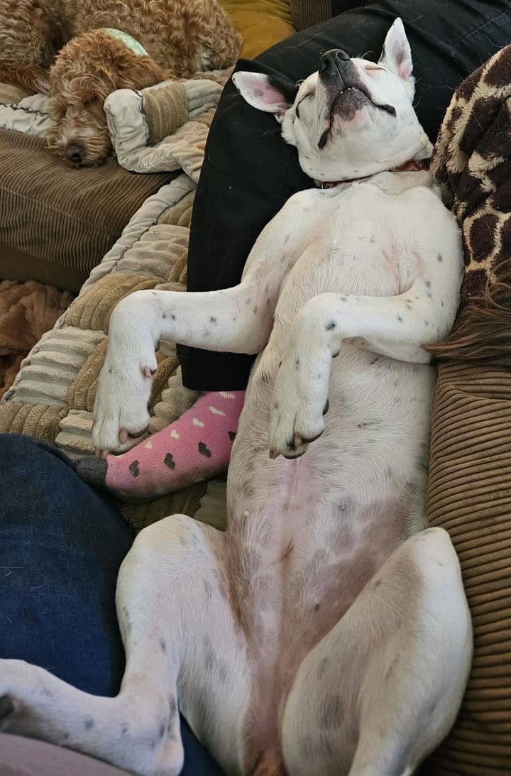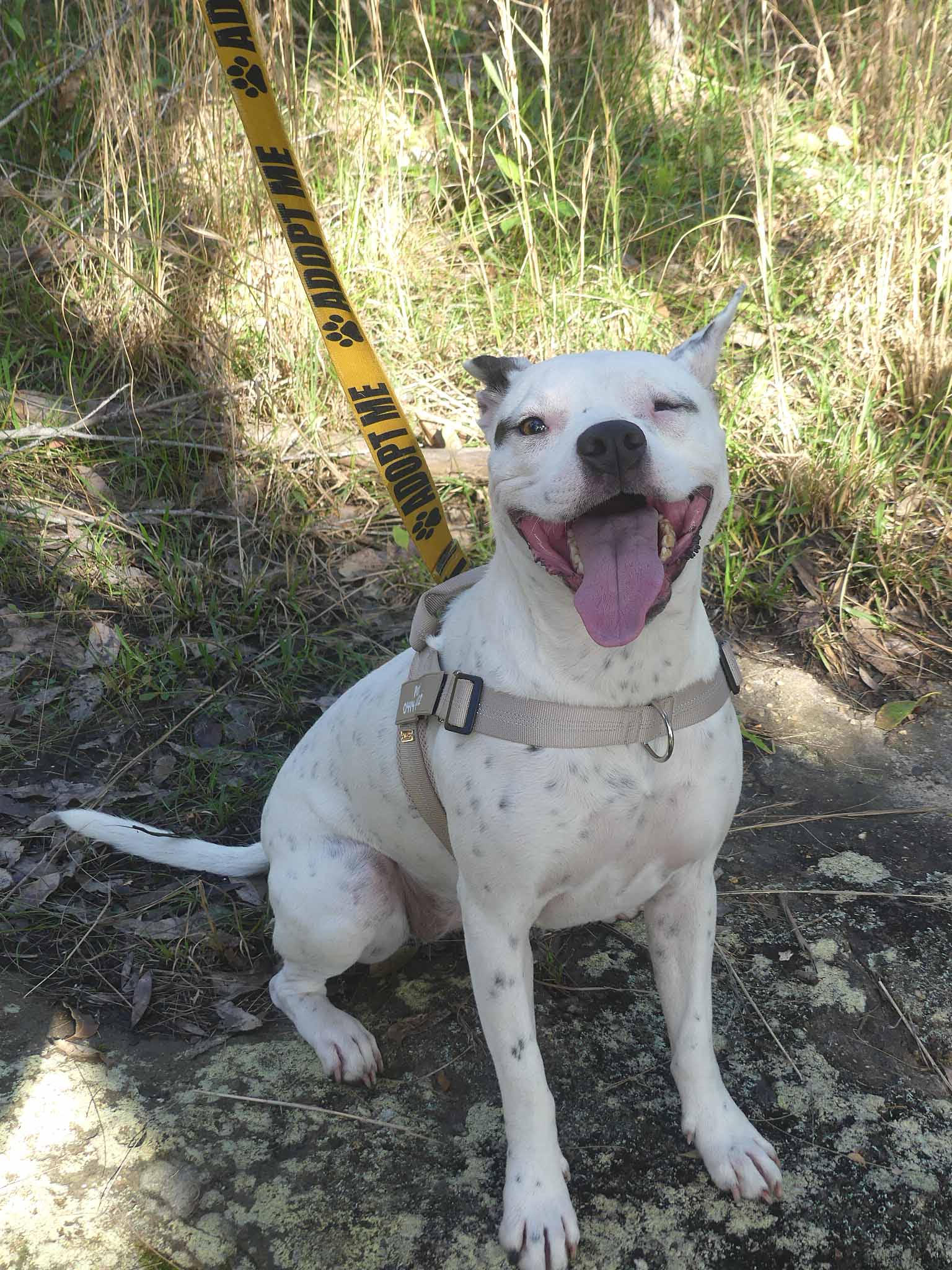 Petal is a sweet fun-loving pup who is eager to learn. She has a lovely affectionate nature and is so playful with other smaller dogs. It seems Petal had an injury in which she lost the sight of her eye, most likely from a dog bite. Nevertheless, it does not stop her playing and enjoying life. She is best with dogs her size or smaller who love to play and rumble. She has a very inquisitive nature and so smart! OMG! She is nervous out walking around other dogs, perhaps related to her injury and not being able to see what is coming from one side so she needs an experienced owner who watches out for her. She has a short coat and weighs about 16kg.