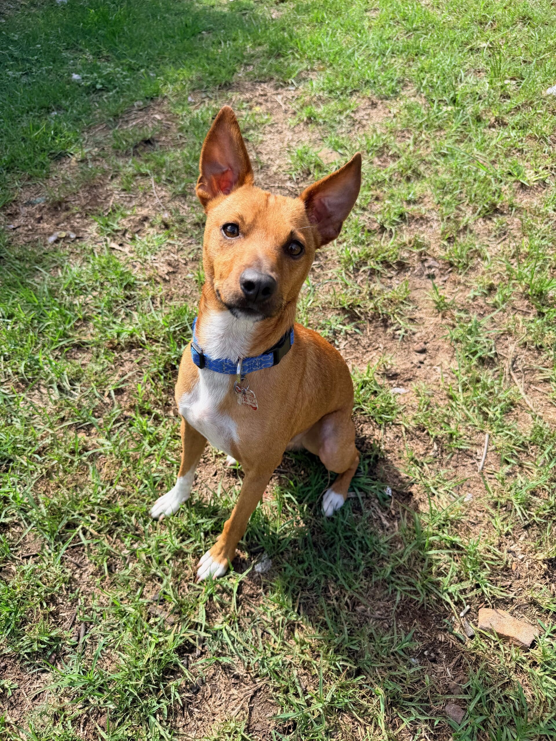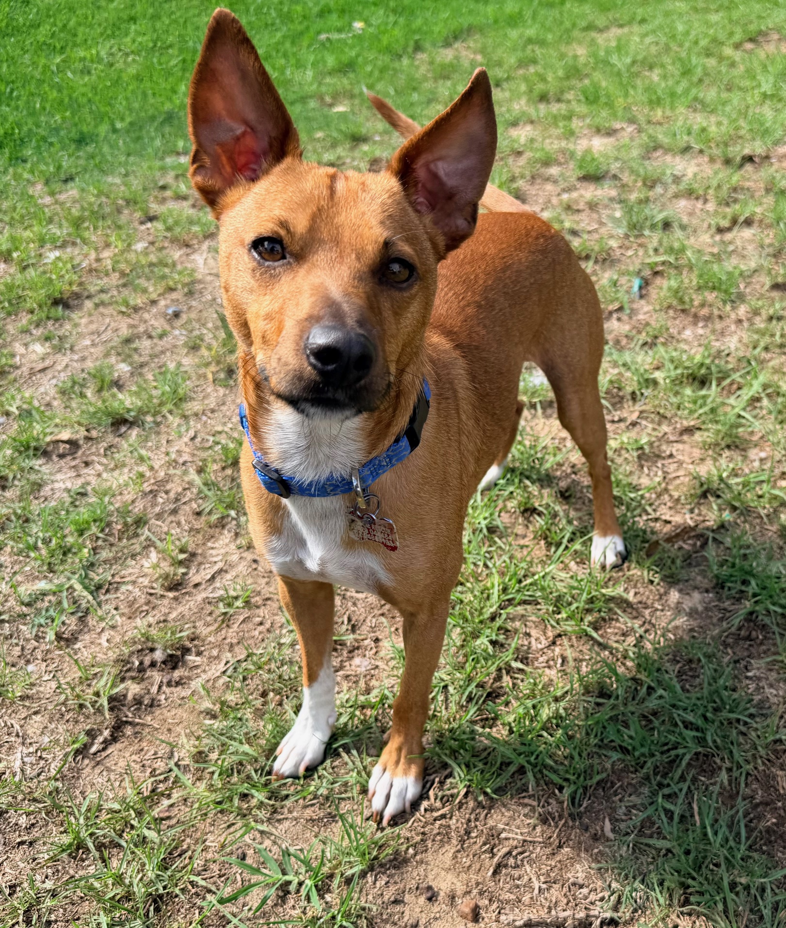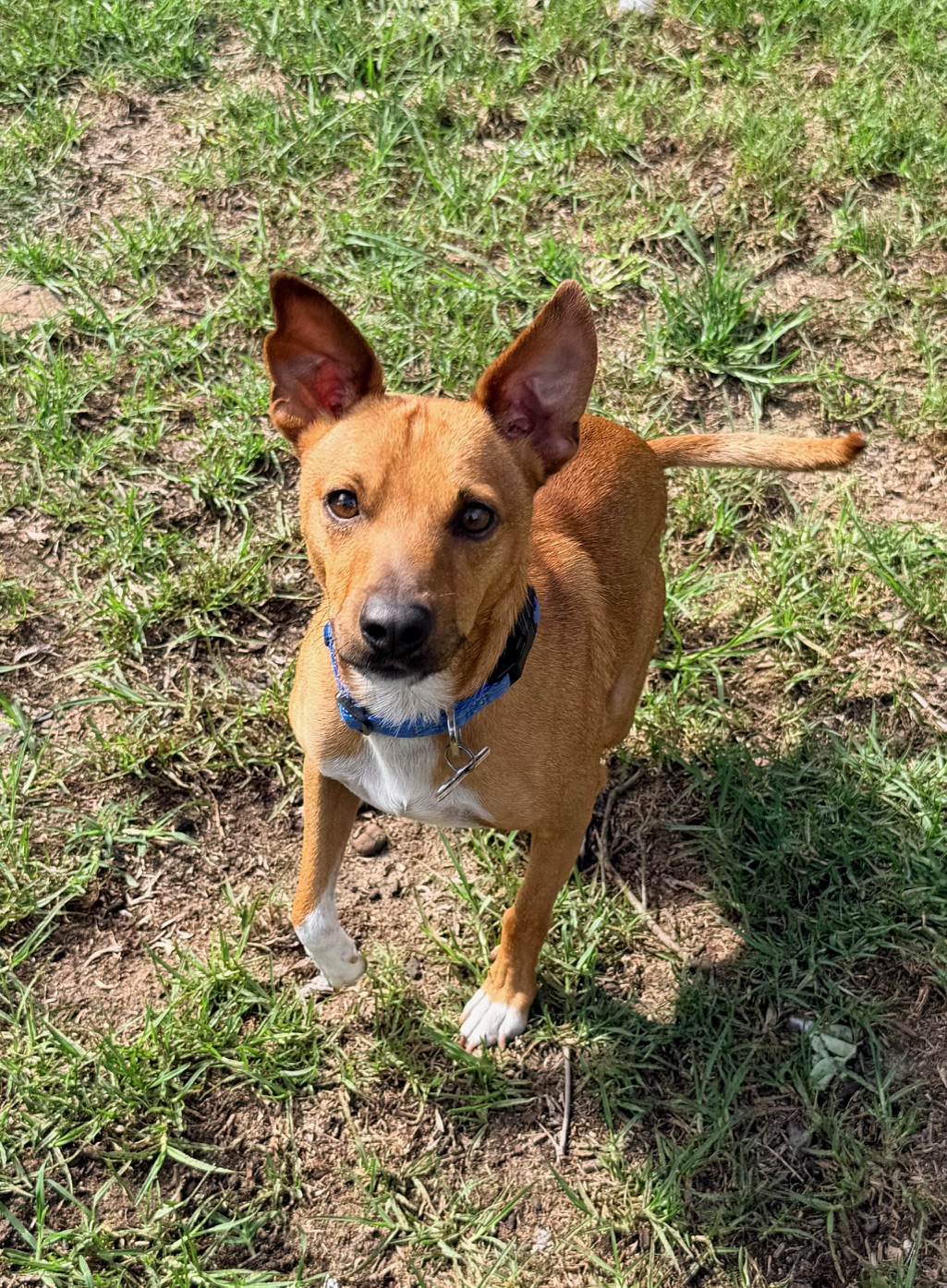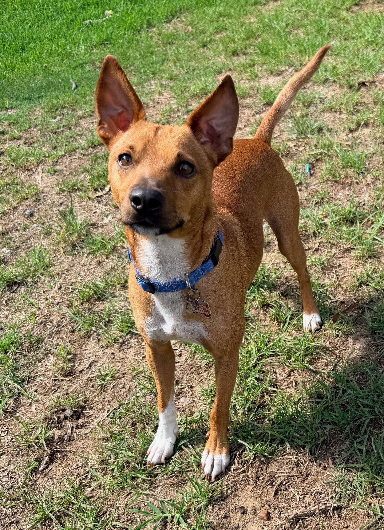 Popcorn is a bright active bouncy boy who loves to be involved in everything you do. He is affectionate and seeks out your attention. He is social with other small dogs but prefers to play with active dogs who like to rumble and chase. Popcorn is good walking on lead and is not disturbed by cars or motorbikes. He has a smooth coat and weighs about 7kg.