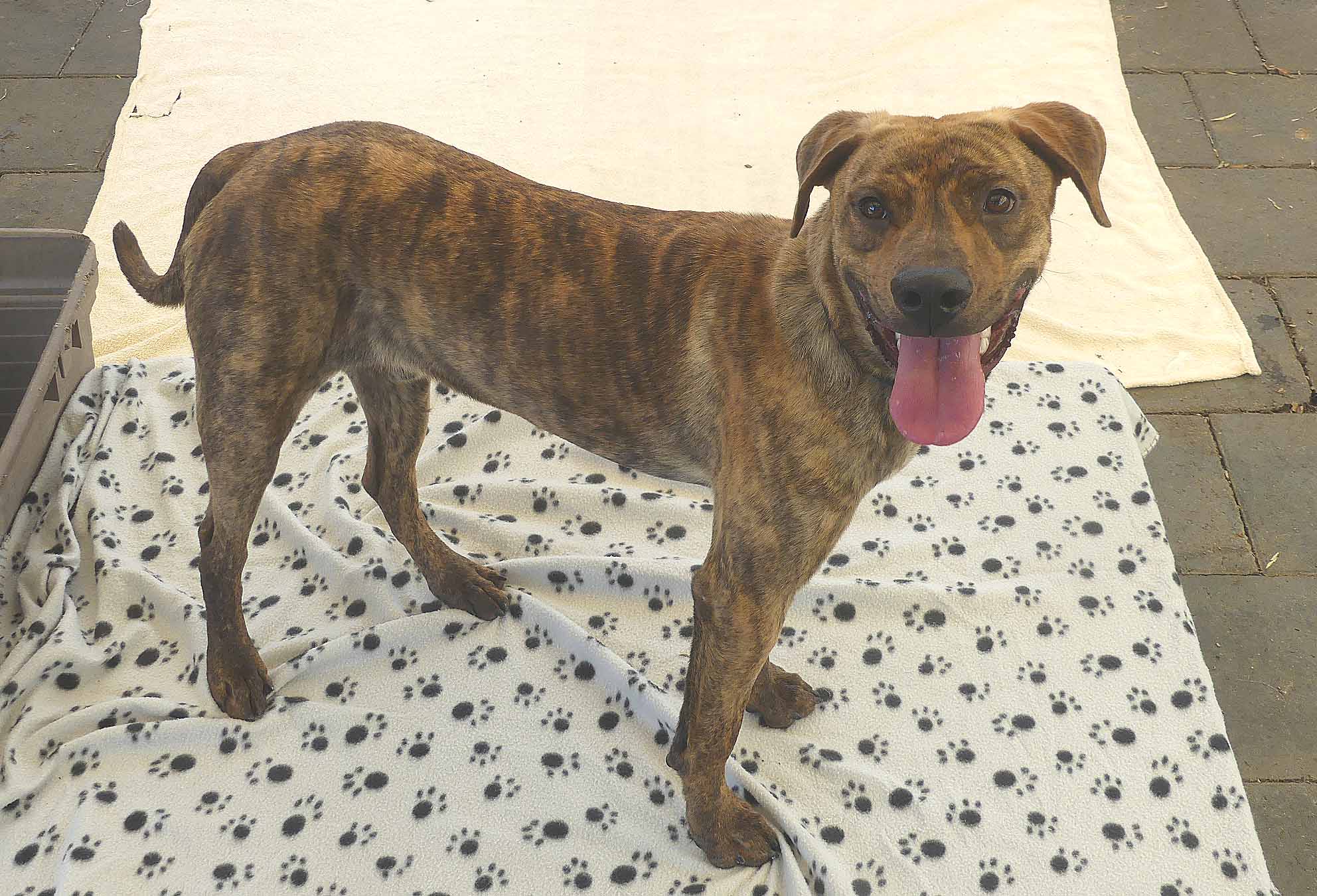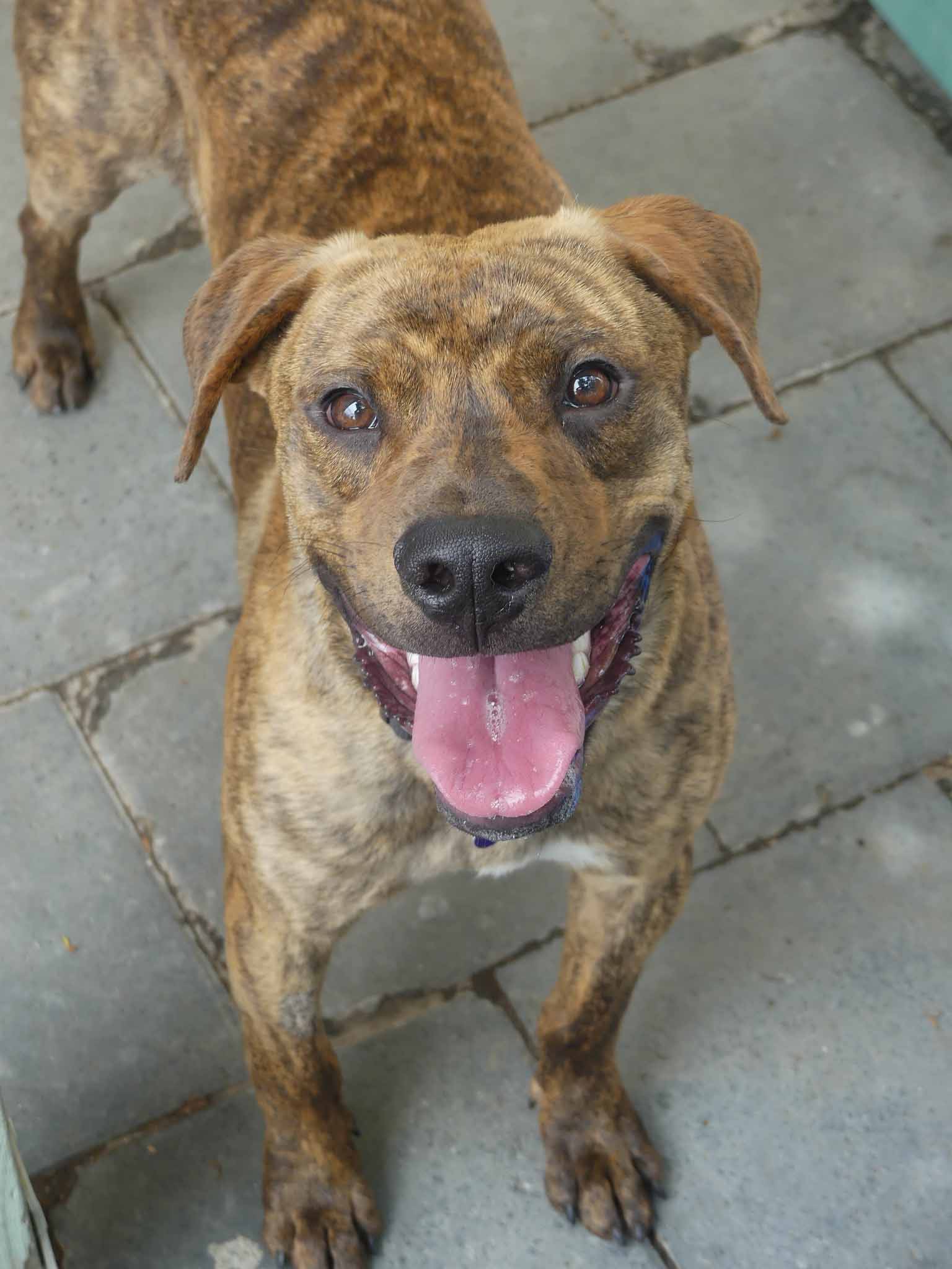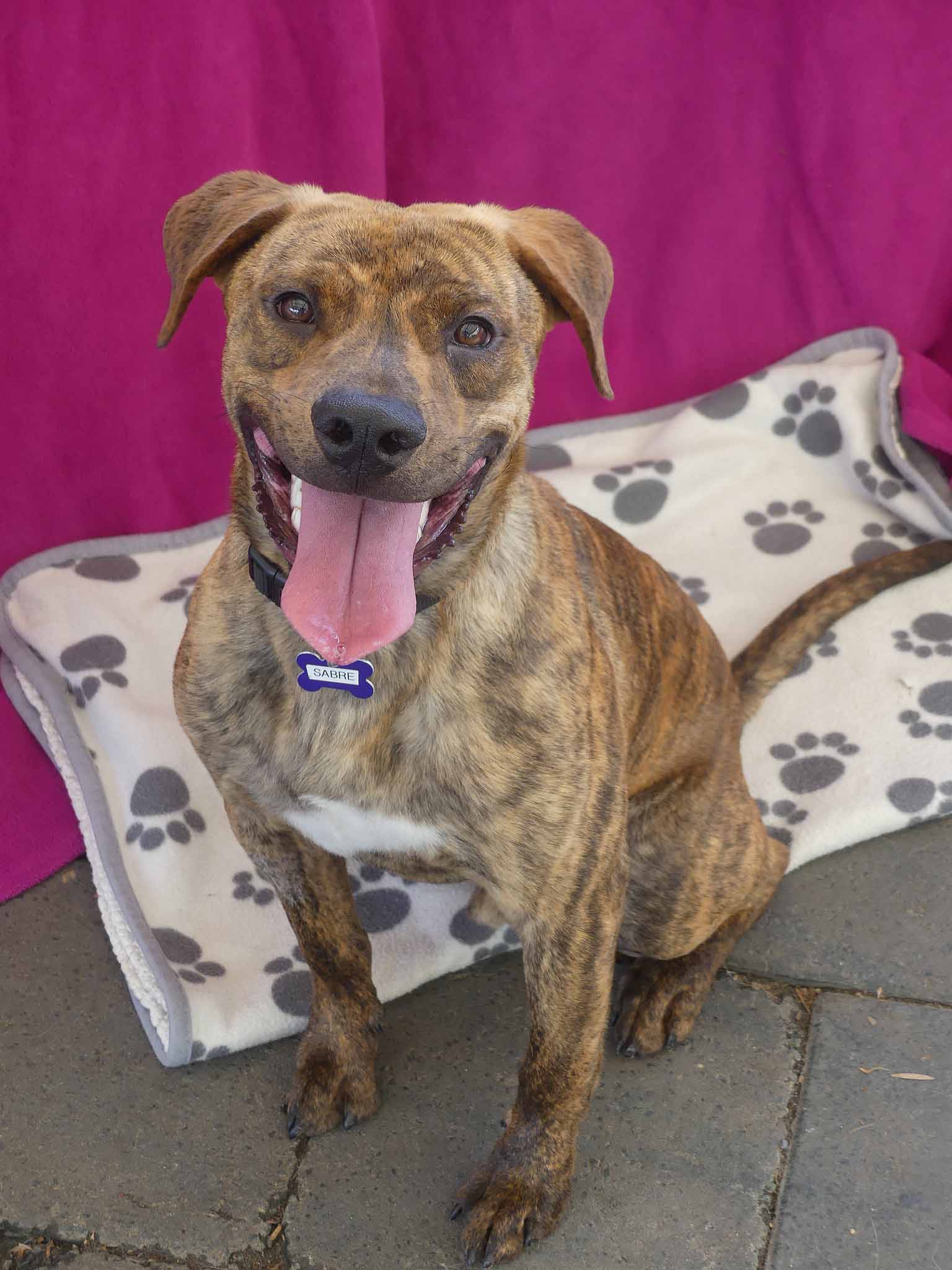 Sabre is a sweet young dog with a friendly nature. Being a teenager, he is very active and playful. Our dog trainer says: "Sabre is a very friendly young dogs who enjoys children but can get overstimulated. When over aroused he will bark at children and chase them. He needs a home with older kids, (12+yo) calm kids and/or an experienced owner ready to train. " Sabre has a short coat and weighs 19.2kg.