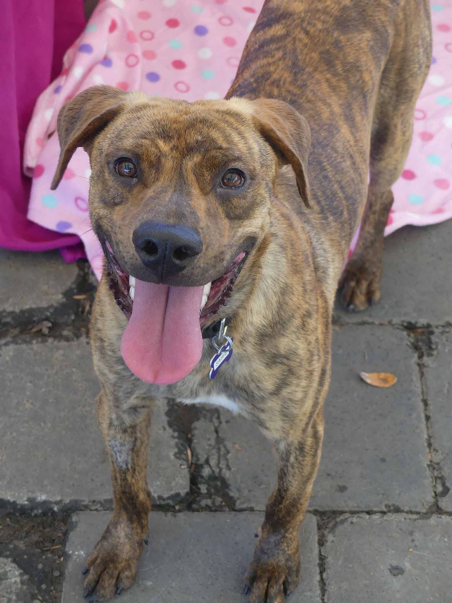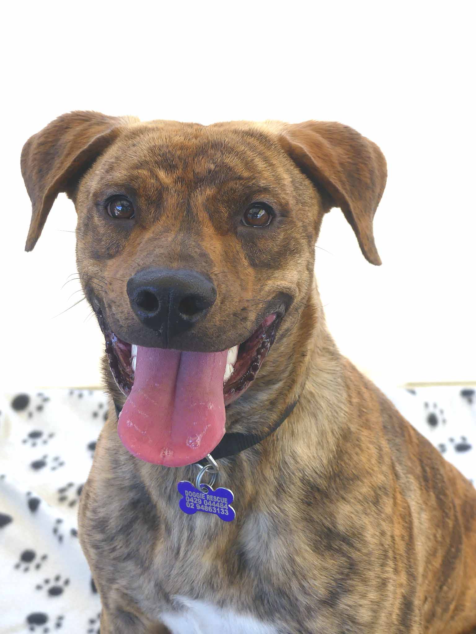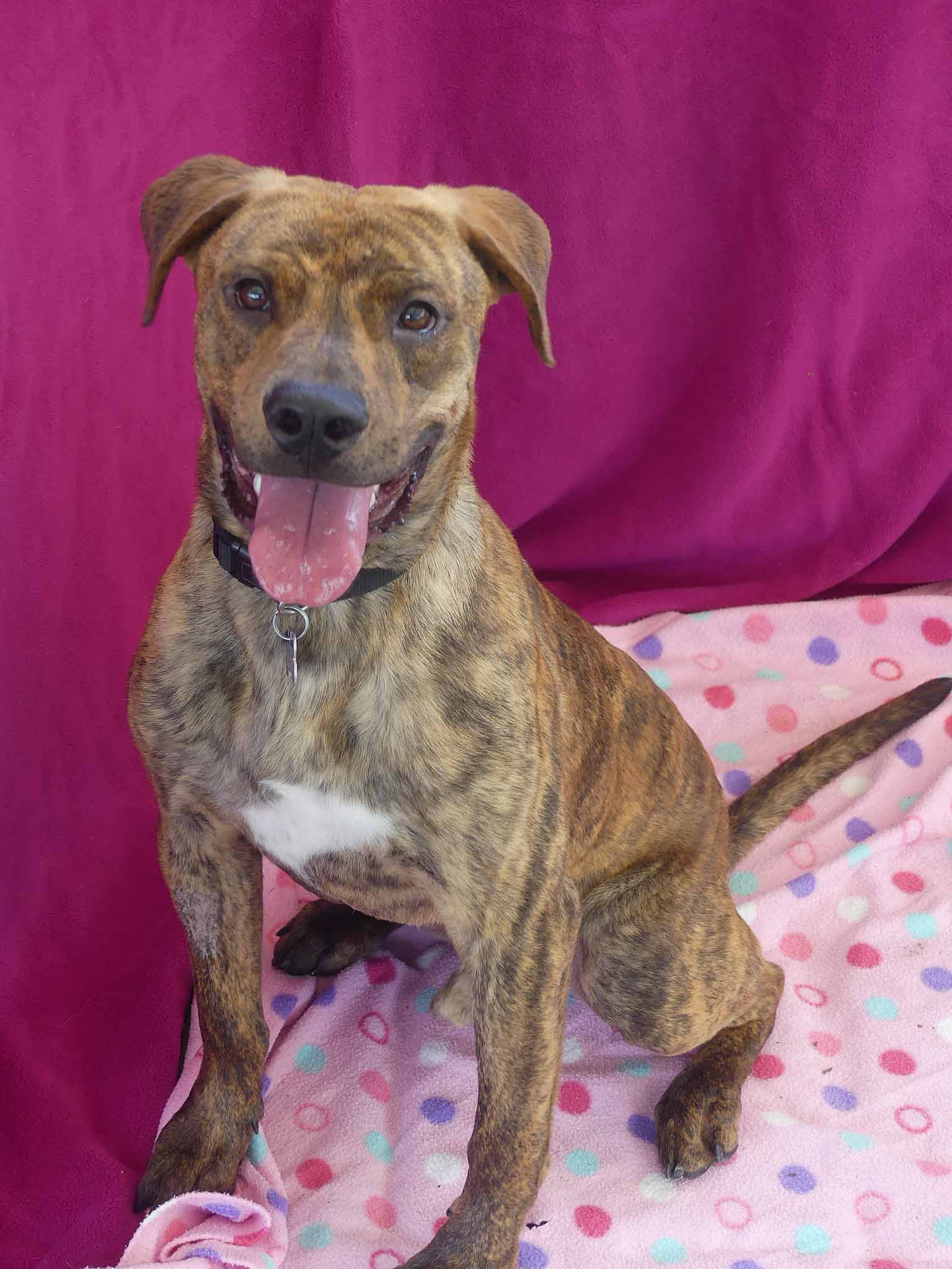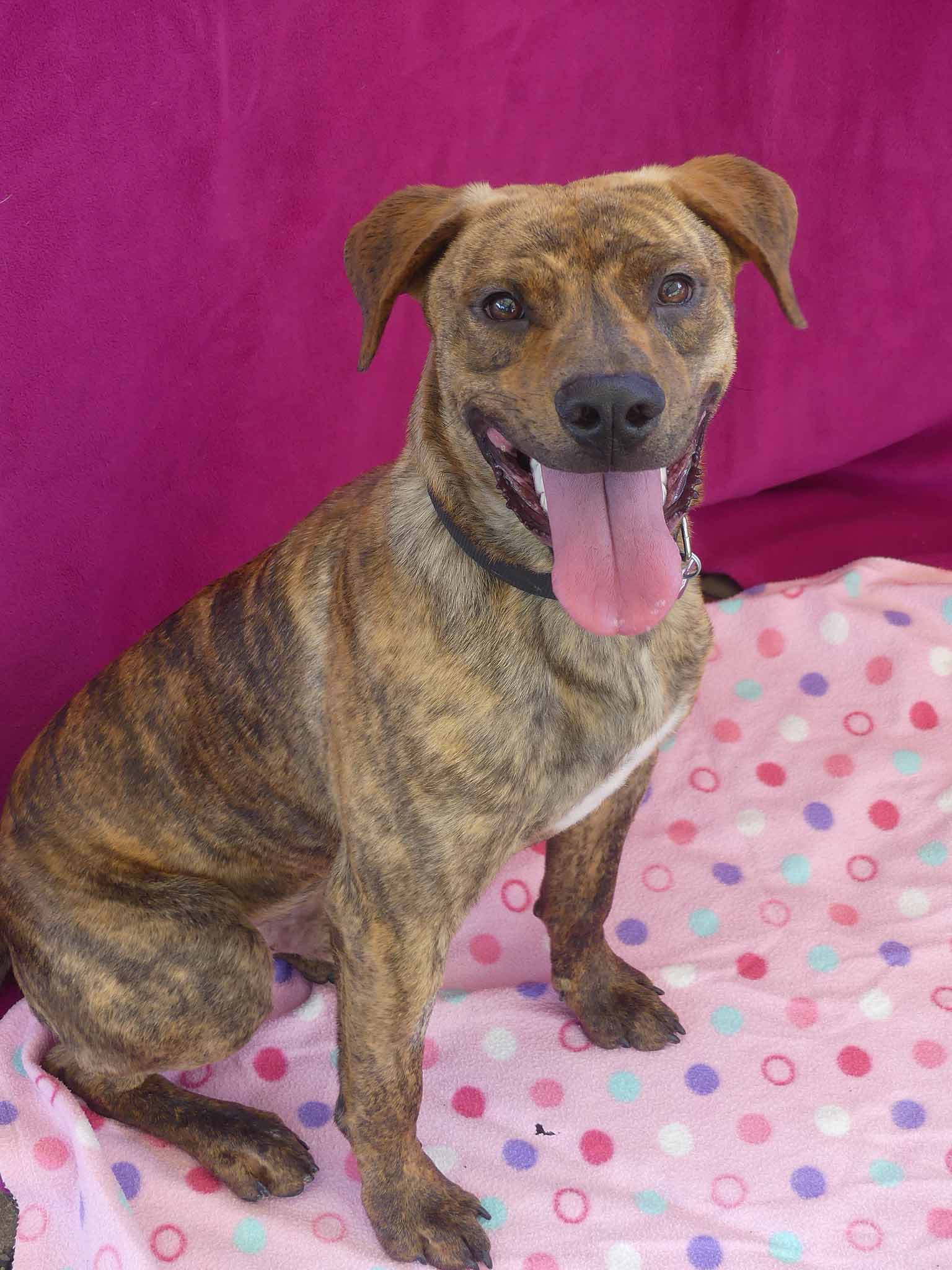 Sabre is a sweet young dog with a friendly nature. Being a teenager, he is very active and playful. Our dog trainer says: "Sabre is a very friendly young dogs who enjoys children but can get overstimulated. When over aroused he will bark at children and chase them. He needs a home with older kids, (12+yo) calm kids and/or an experienced owner ready to train. " Sabre has a short coat and weighs 19.2kg.
