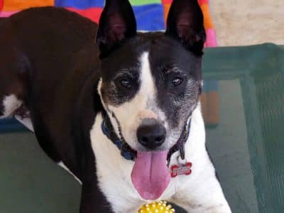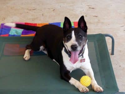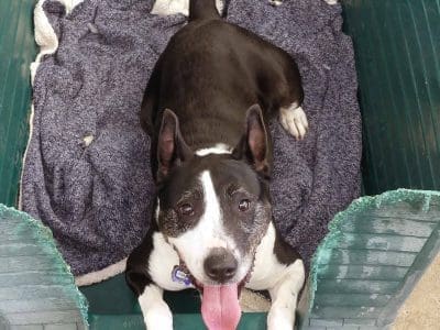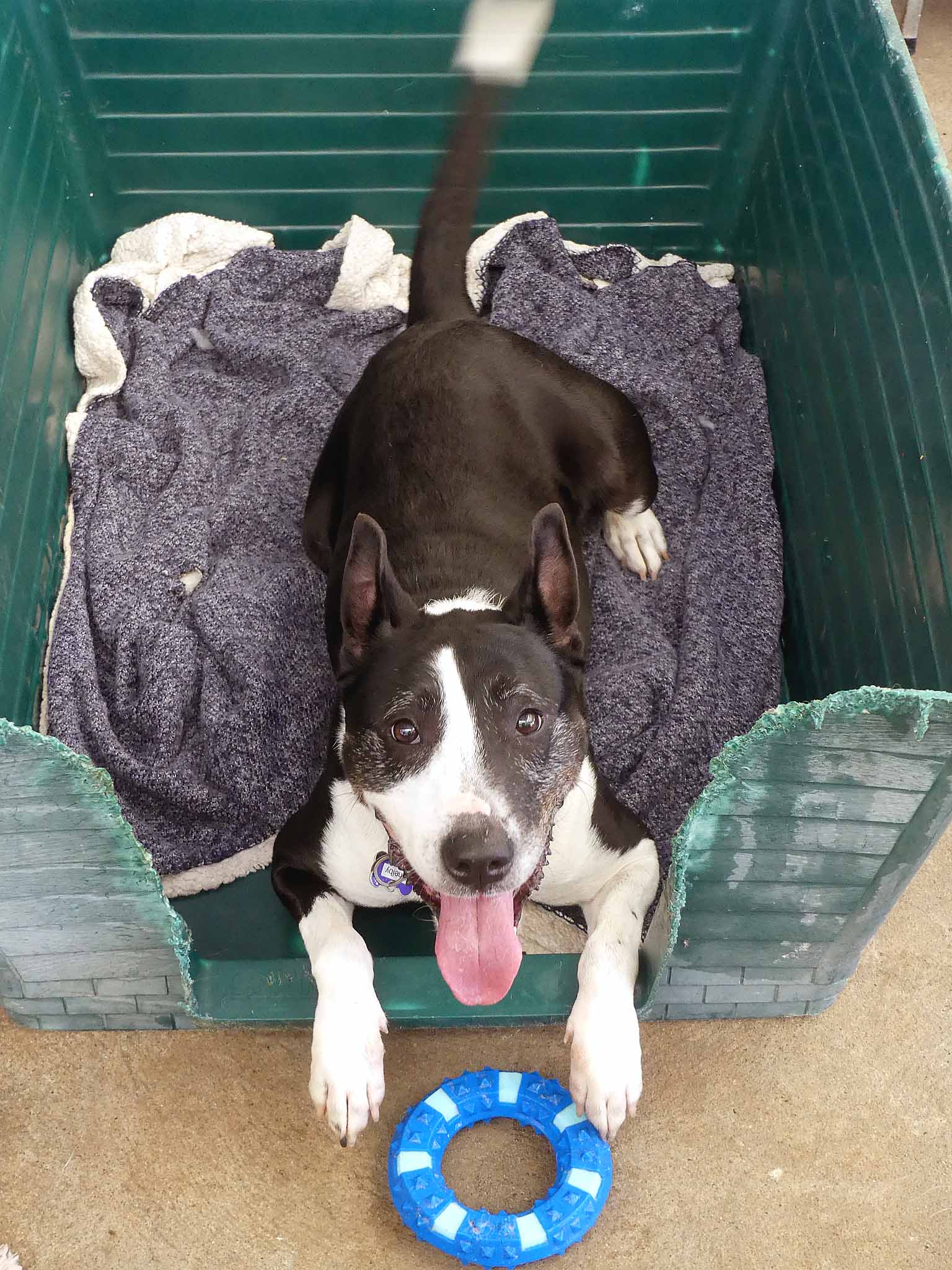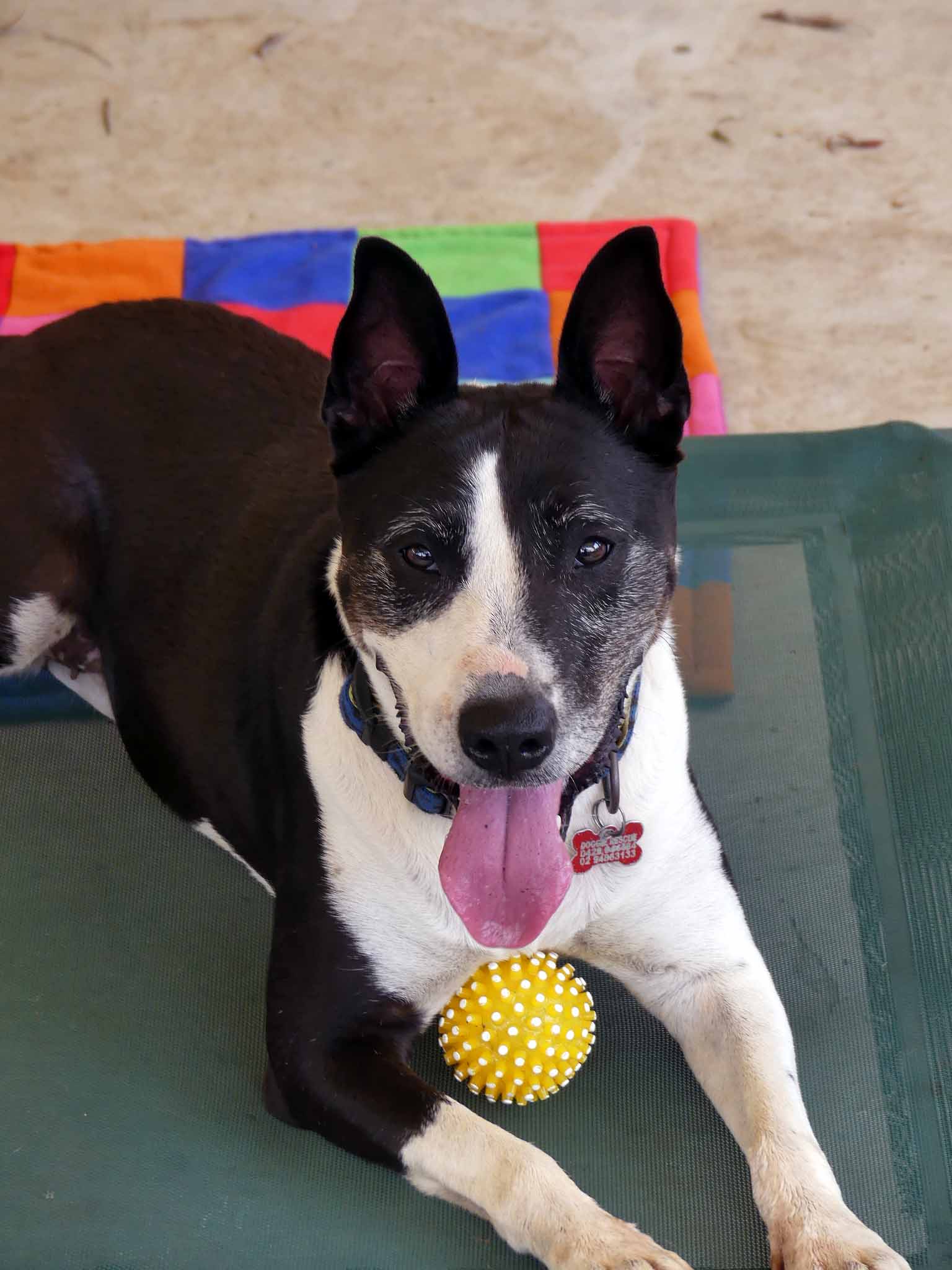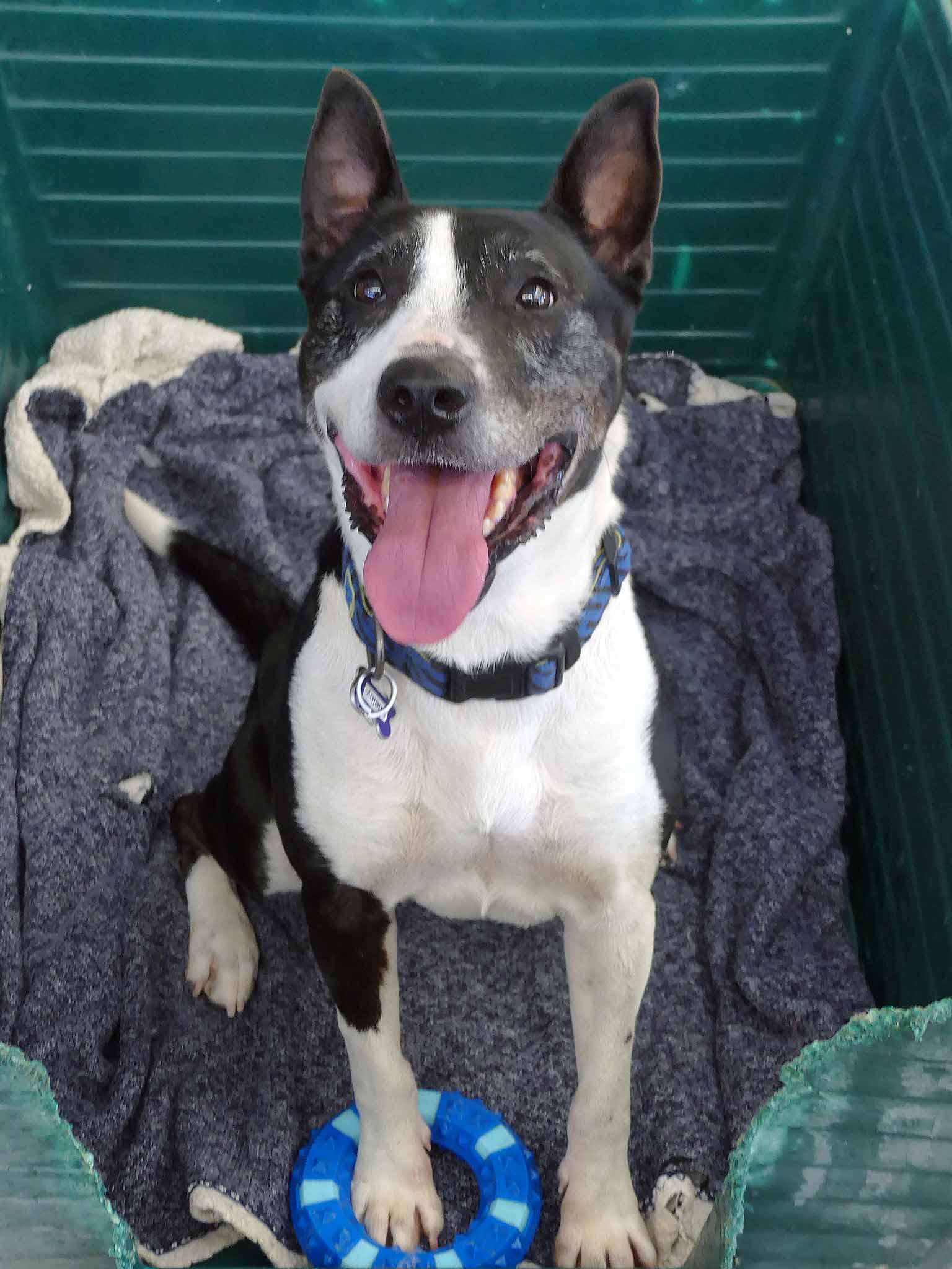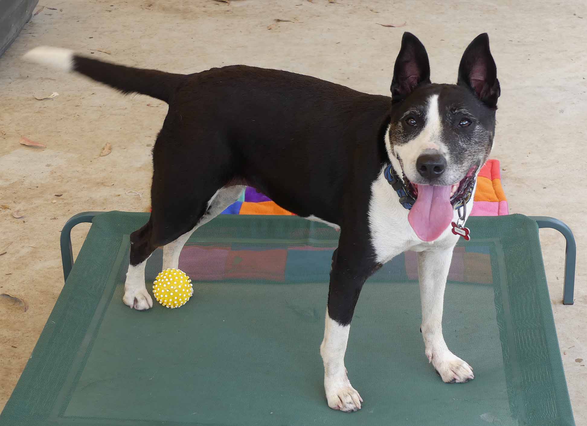 Shelby is a sweet but slightly anxious girl. She is affectionate with people and just loves balls. She walks well on loose lead and is generally well mannered. Our trainer says: "Shelby is a ball obsessed excitable dog. She is fairly kid tolerant but too excitable and strong for younger kids. She is easily aroused and over stimulated by young kid play. She will snatch balls and treats from kids. She is better suited to a calm household with older kids." Shelby has a short coat and weighs 20.9kg.