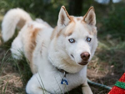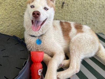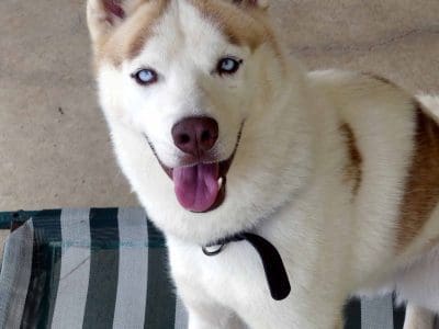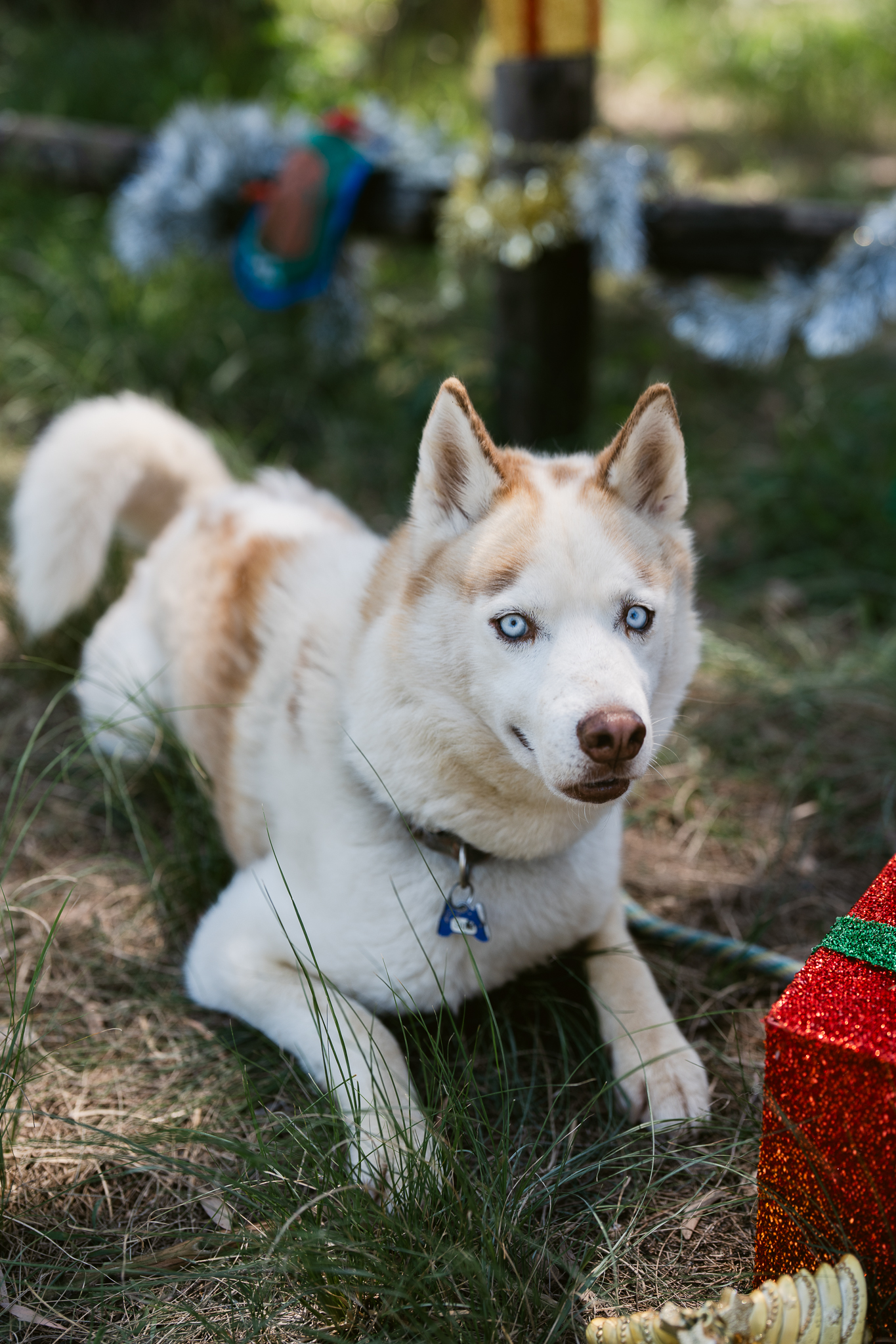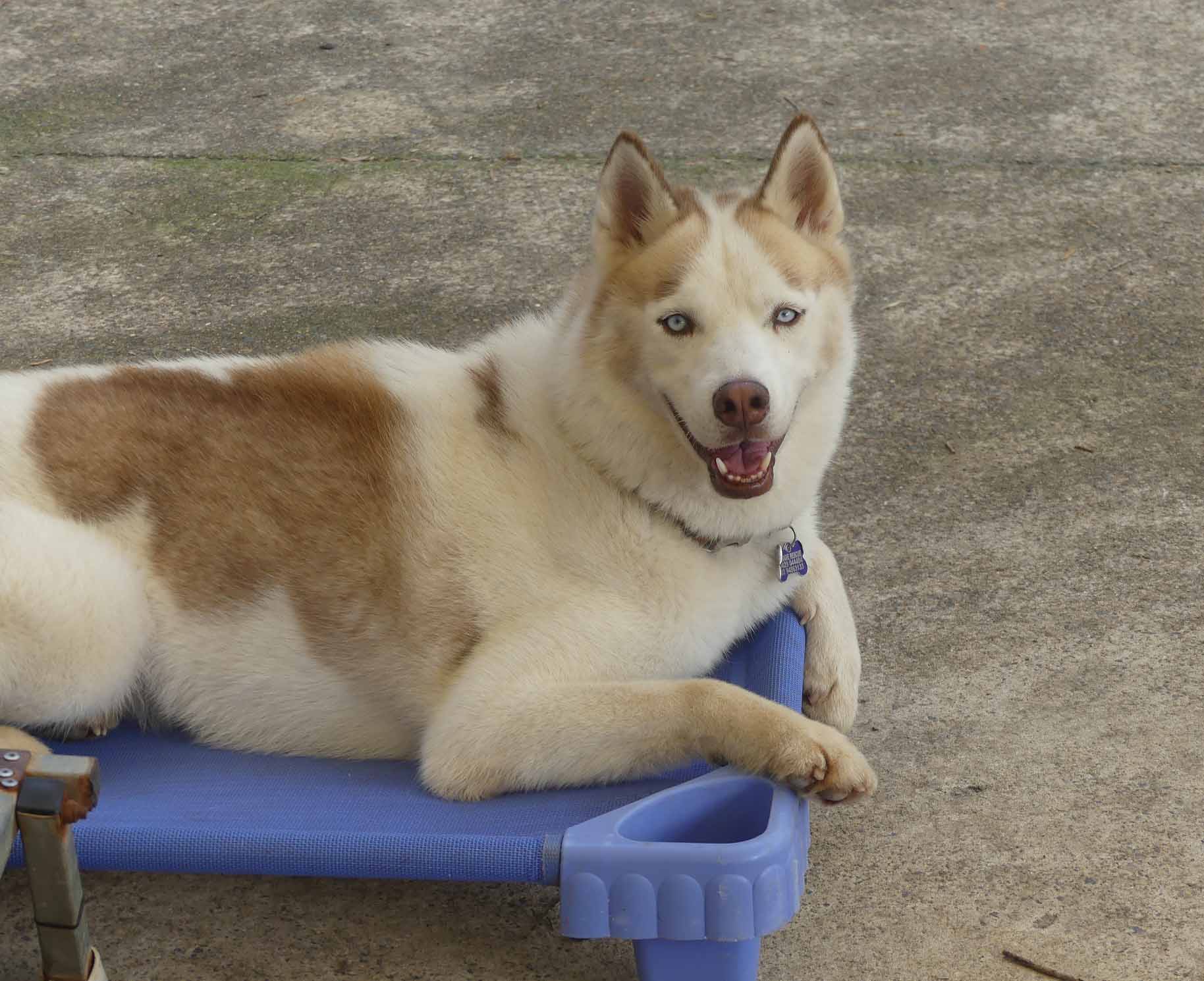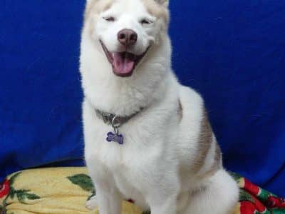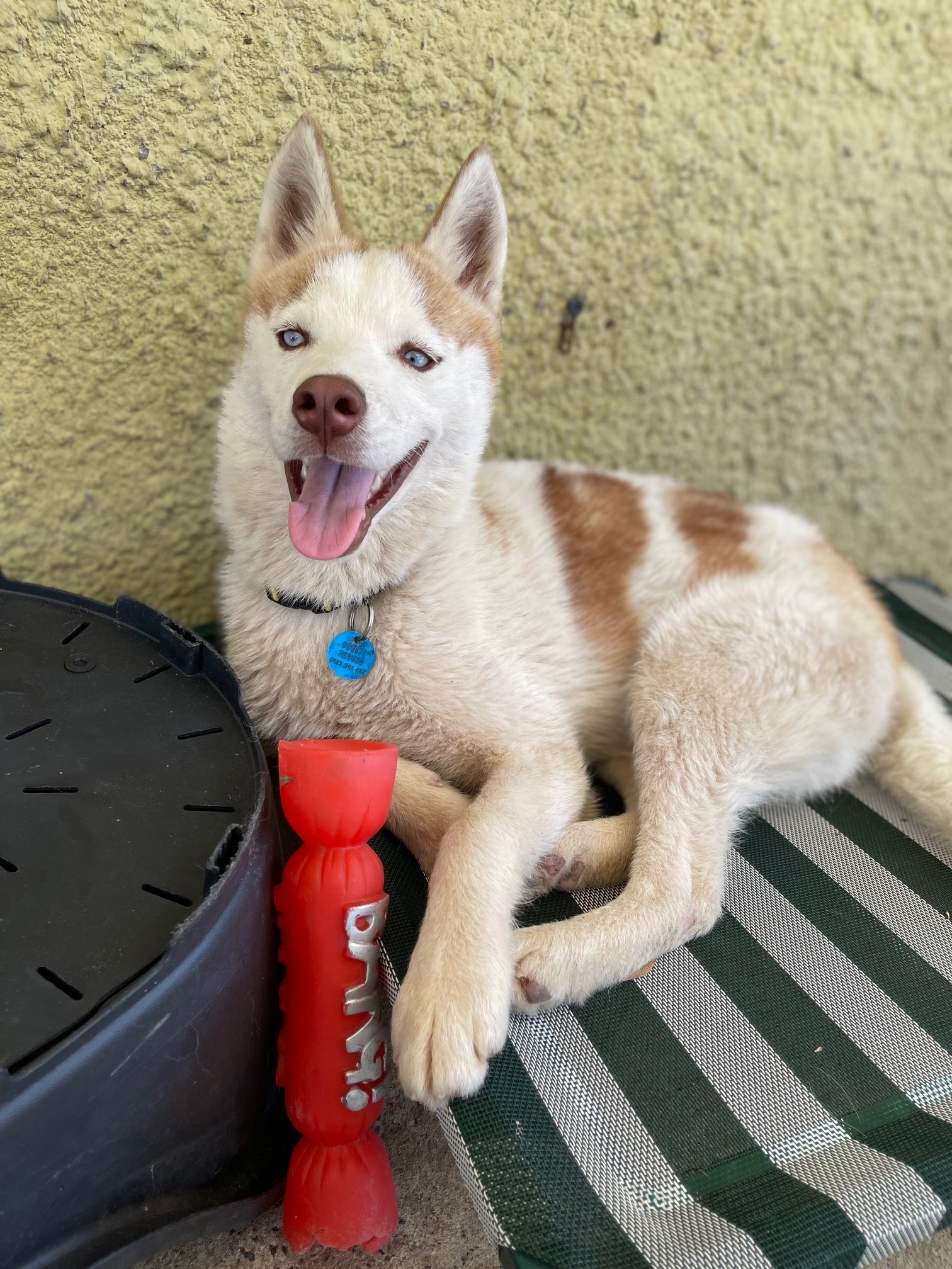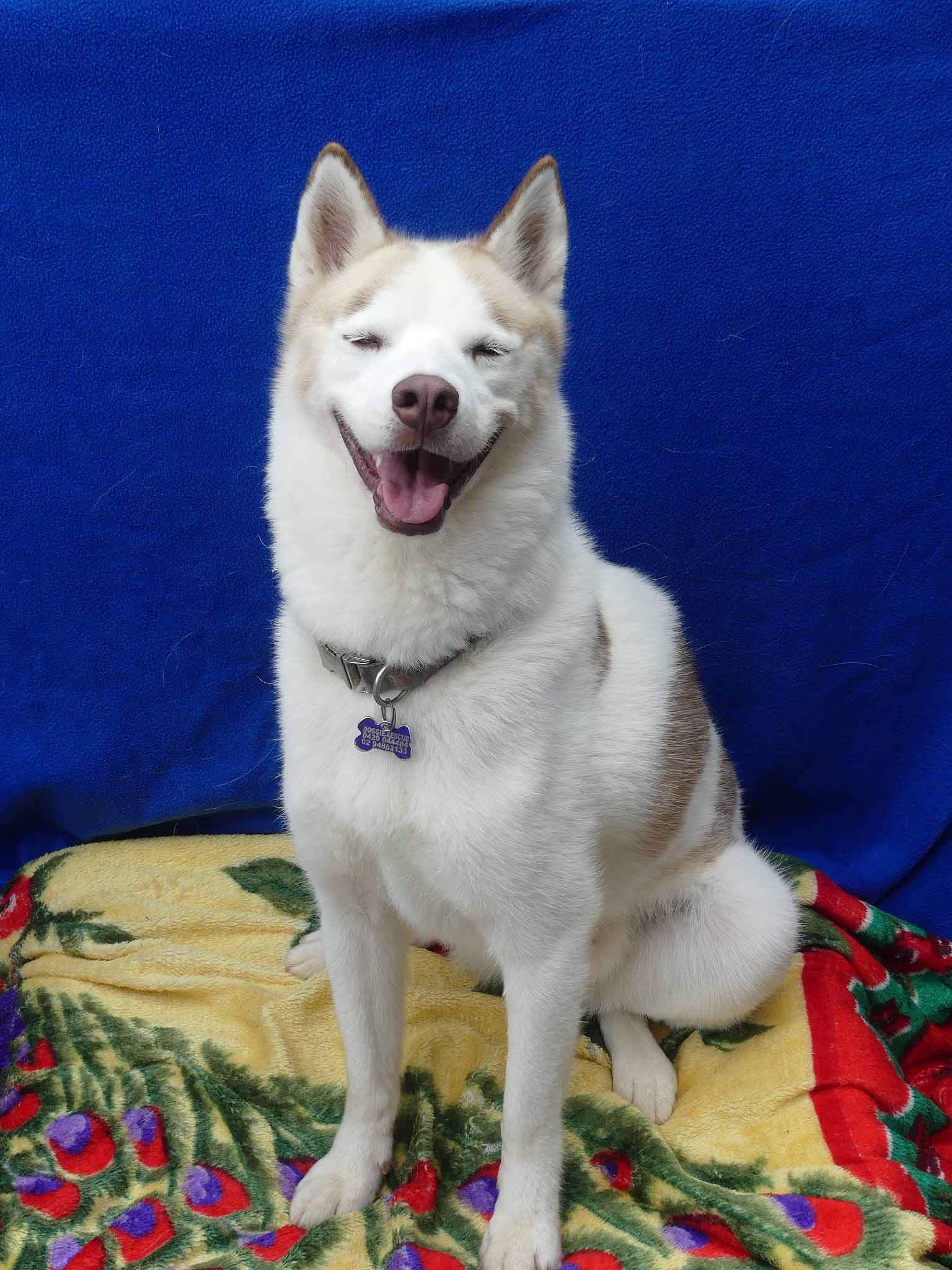 Spirit is very playful and puppy like amongst his mates. He is still a bit scared to walk on lead. He walks with encouragement and at a very slow pace. Walkers say: "Hesitant to start but walked well once interested in surroundings. Likes the long grass.", "He is very timid. Seems not very interested in walking far from shelter", "He is friendly but lazy(scared) for walk. He prefers to be taken in arms (like a baby!), "Be patient with him. He will decide when/where he goes. Beautiful dog". Spirit like all huskies has an undercoat that sheds seasonally and needs lots of brushing. He weighs 11.4kg and is still underweight. He has a bit of growing to do.