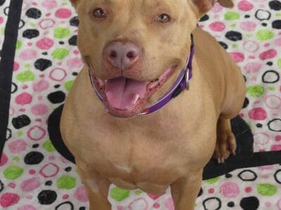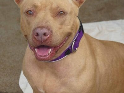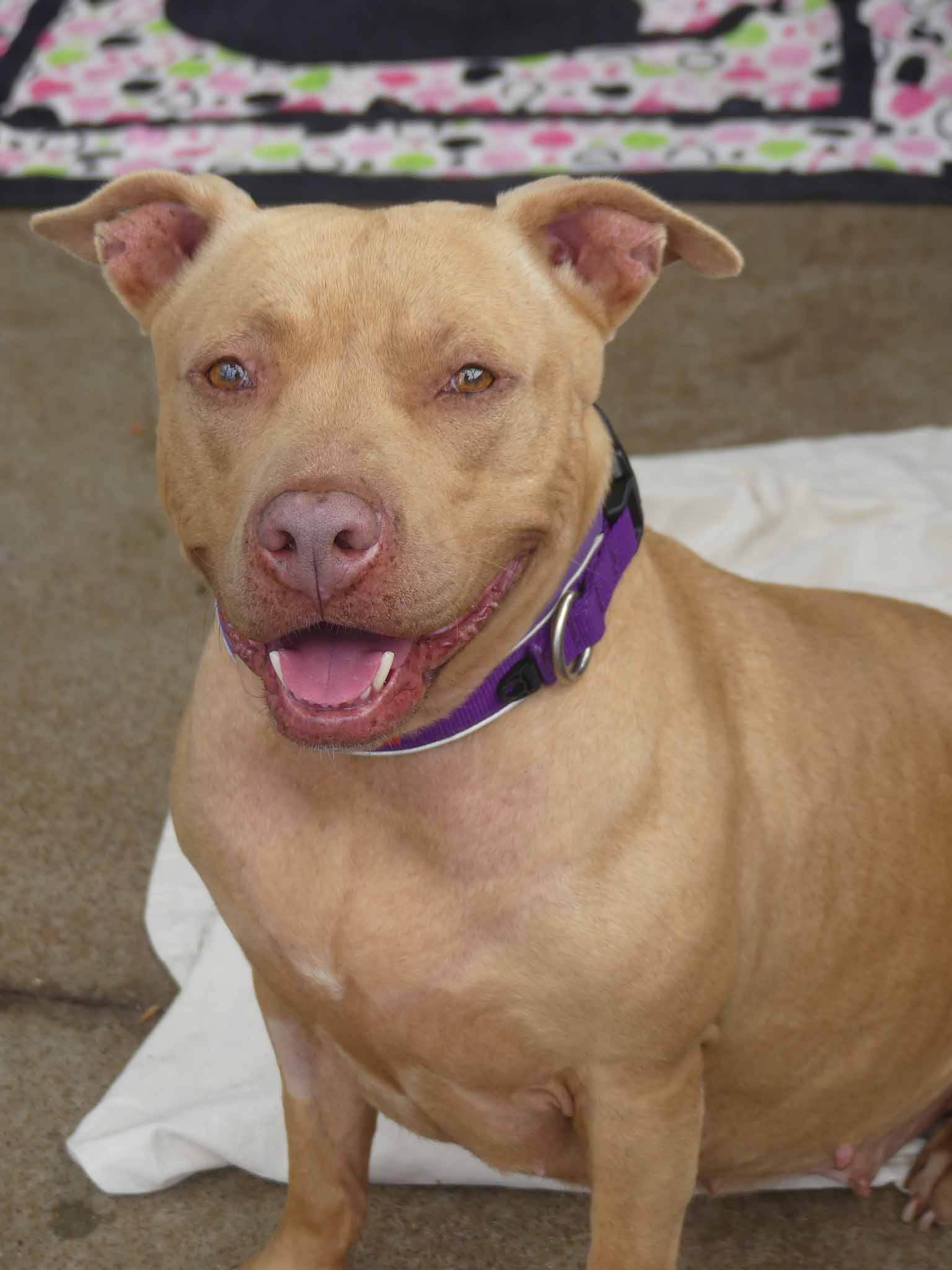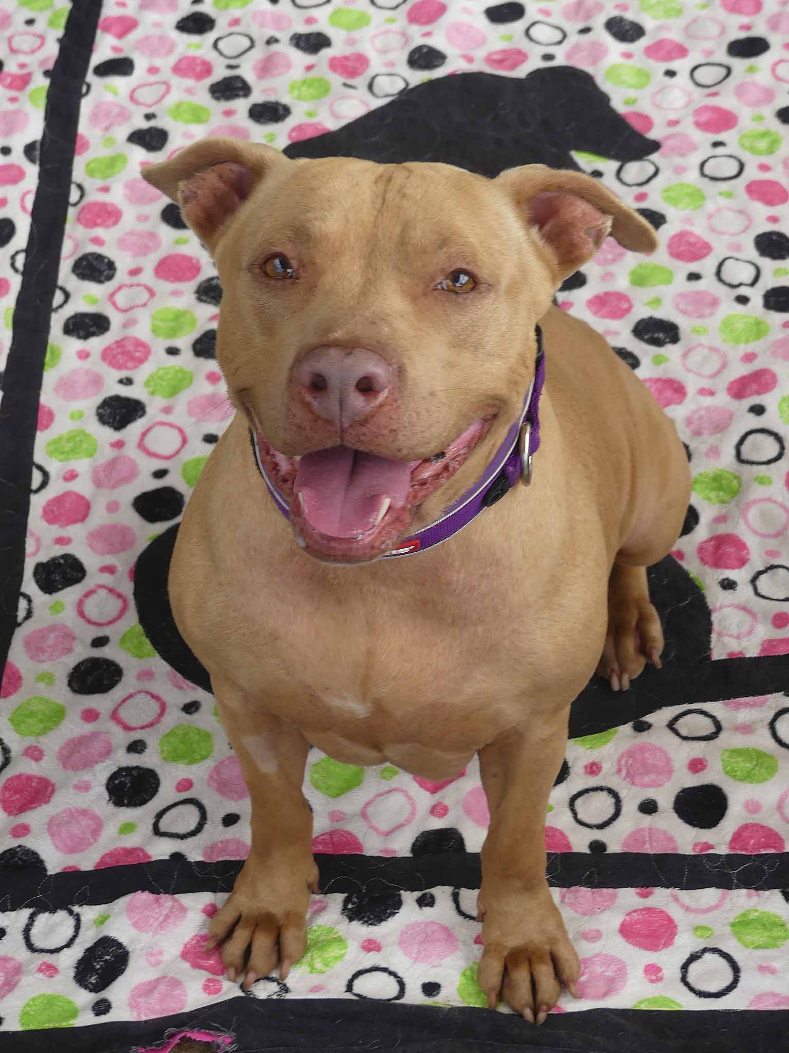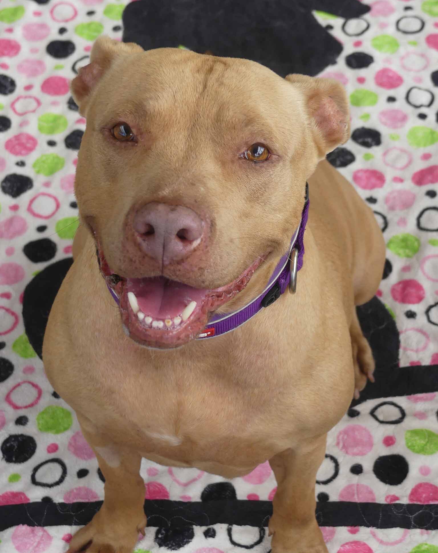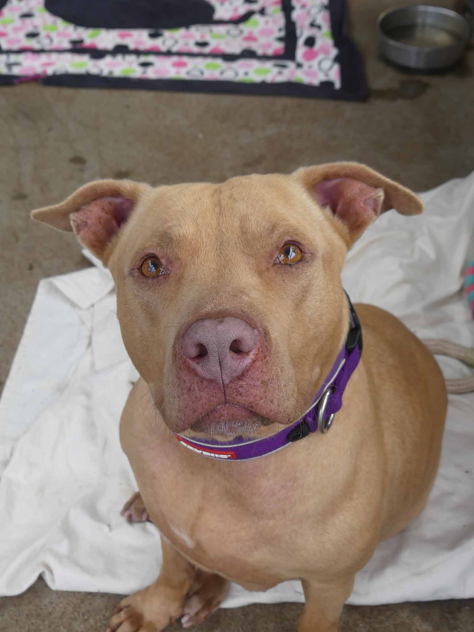 Stella is such a sweet loving girl. She was a favourite at the pound however they tested her for heartworm, and she was found to be positive, so she had no future. We rescued her and found her just delightful here. We have started her heartworm treatment and DoggieRescue is covering the treatment costs. The treatment generally takes about 3 months. She can be adopted at any time. She walks well on loose lead and so easy to handle and of course loves her treats. She has had quite a few pups in her life but she is now desexed. She has a short coat and weighs 26.5kg.