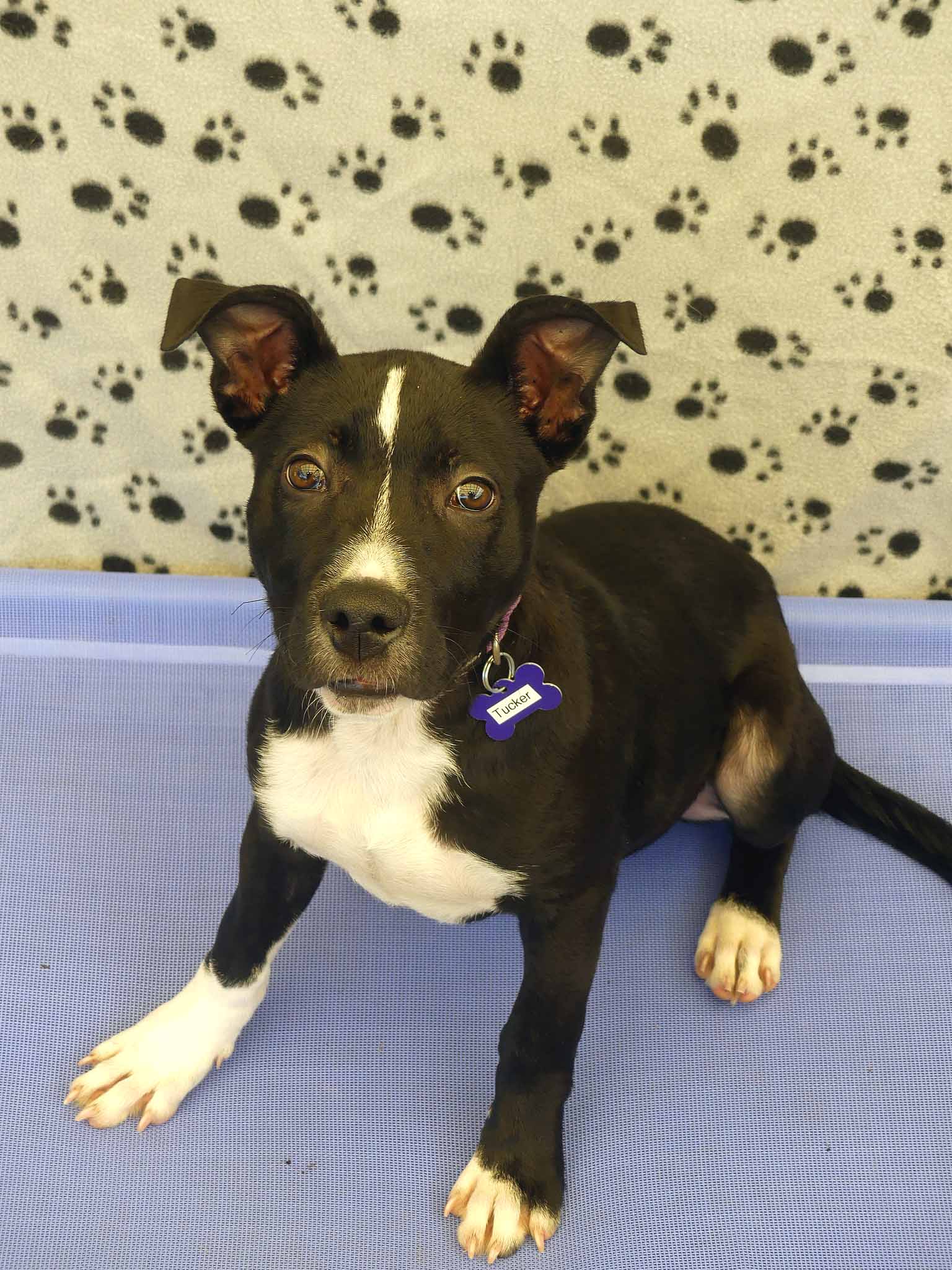 Tucker came from the pound at just 16 weeks and started as an anxious highly strung little boy who was protective of his food. He has come a long way and sits nicely for treats with no issues. He walks well on lead and adapts to new environments well. Tucker has been introduced to some female dogs. He is a confident sort of a guy who would be best with a confident female dog who is not too assertive in manner to show him the ropes and guide him to good doggy manners. At 16 weeks Tucker weighed 10.8kg.