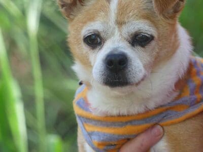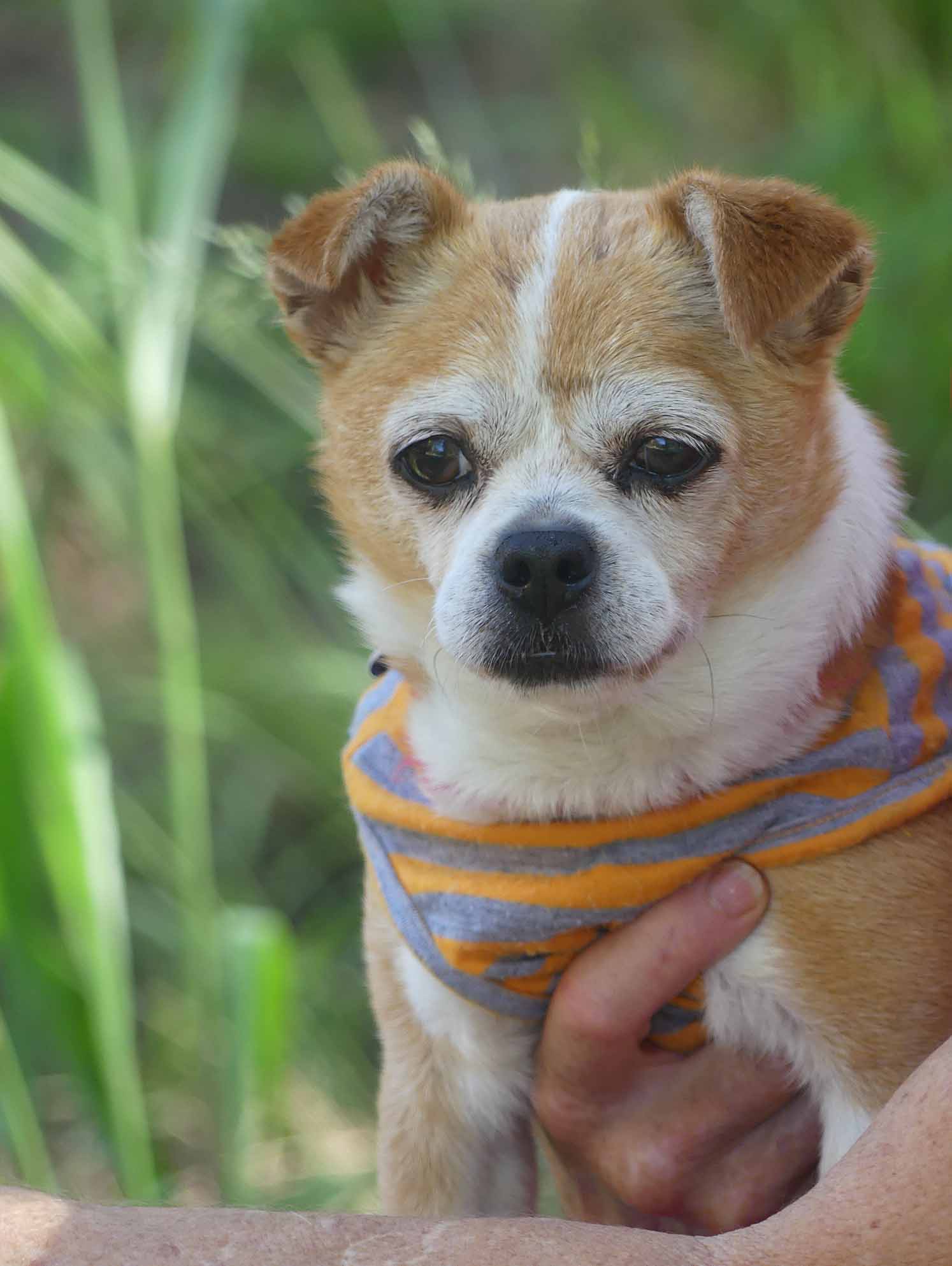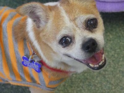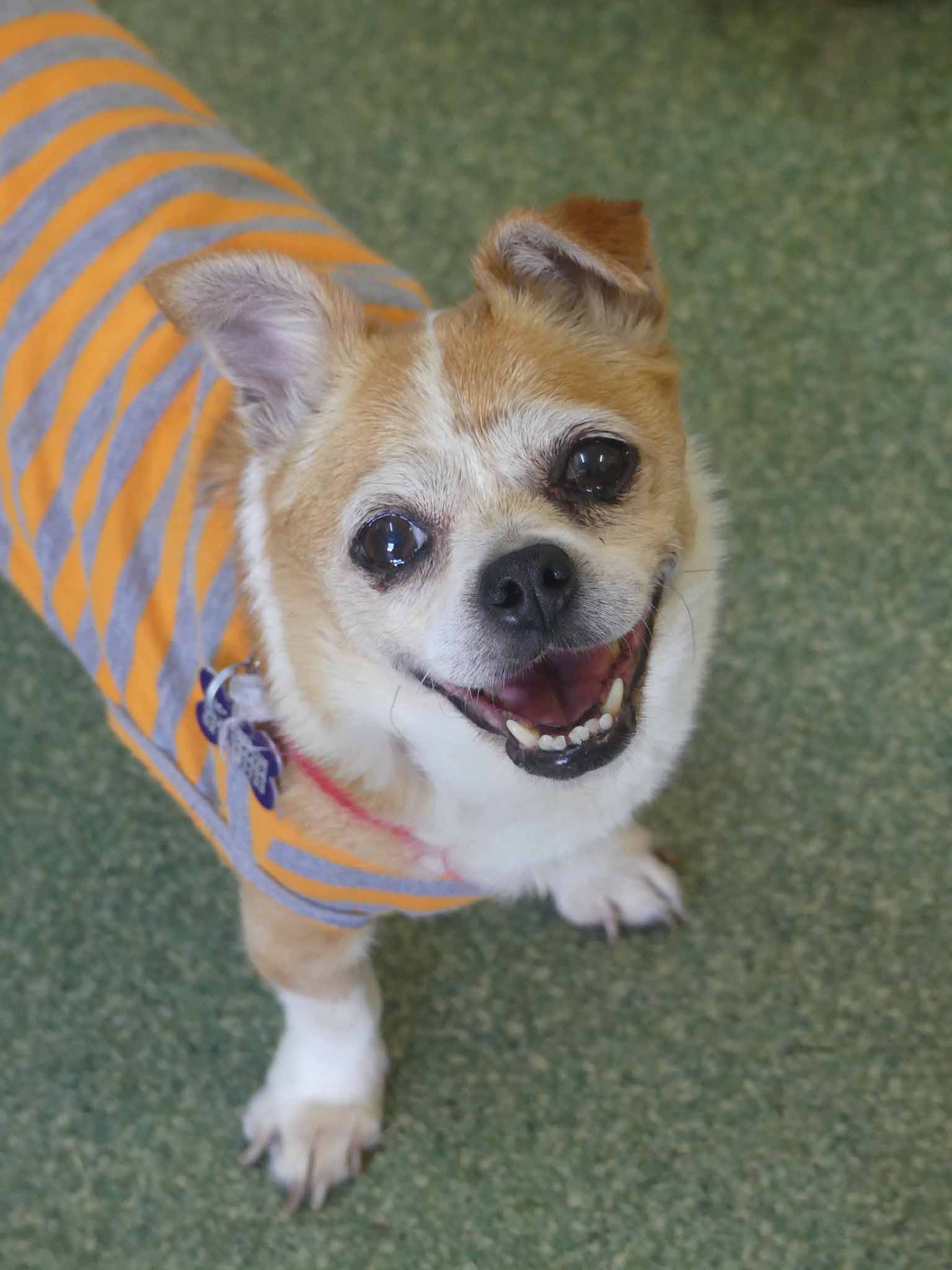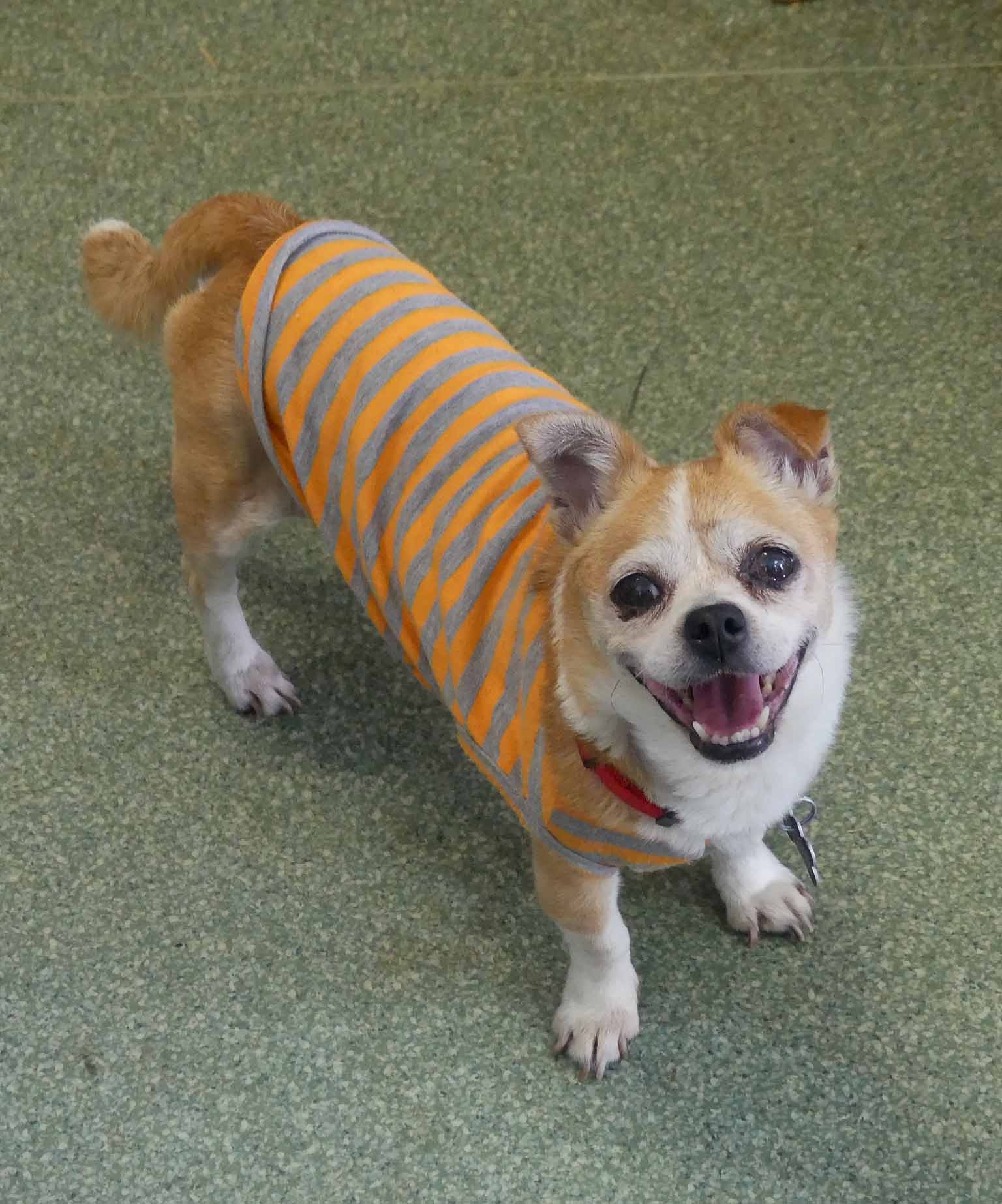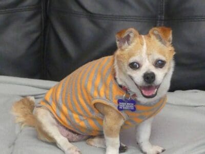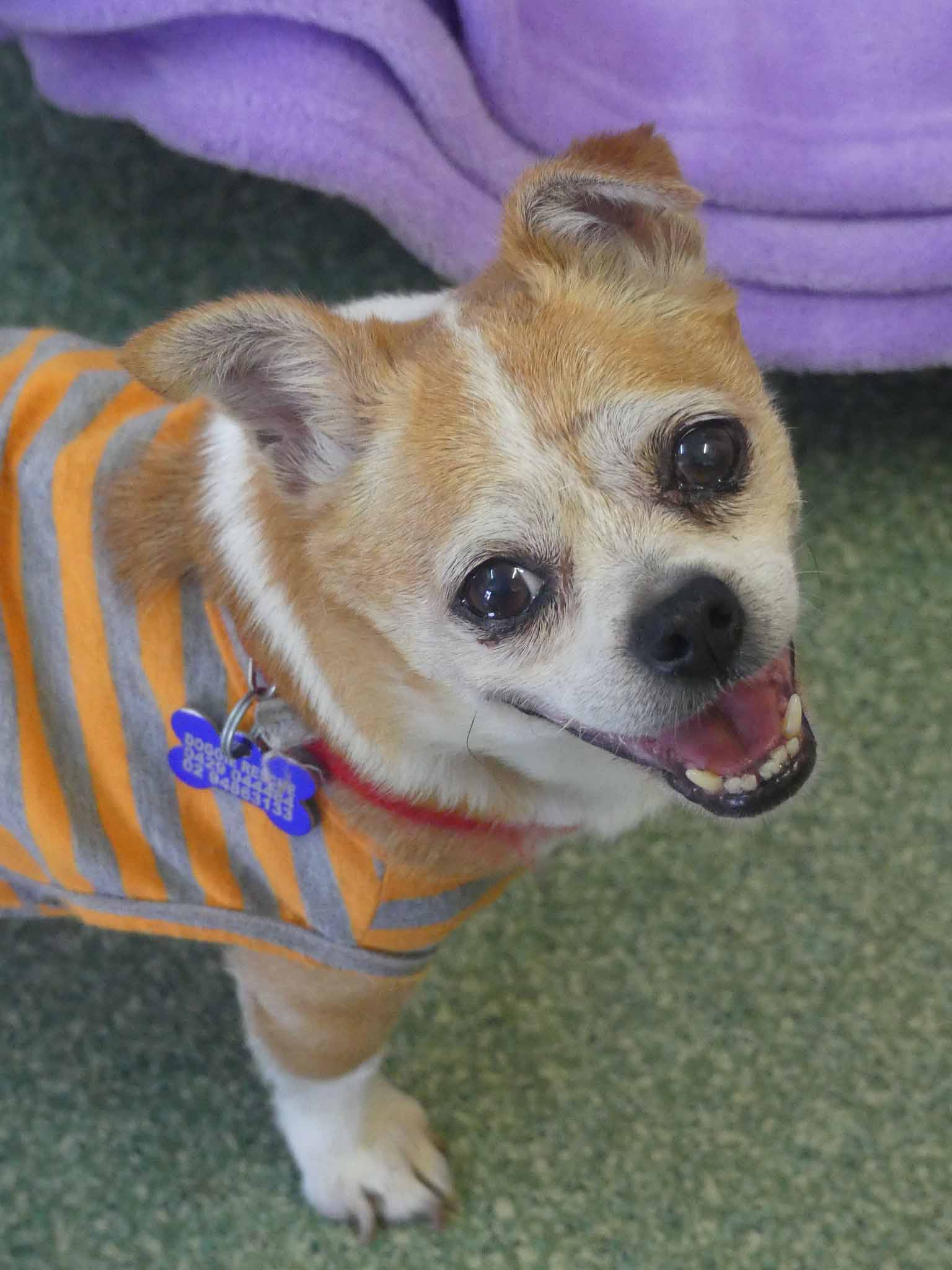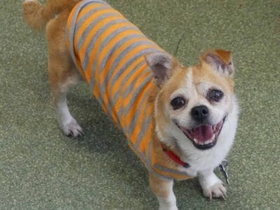 Sweet Twinkle is such a happy easy girl. She has come from the pound in poor condition, and we are slowly working through her list of medical issues. She has bilateral inguinal hernias, bad teeth and a few skin lumps. Our vets have just diagnosed her as being diabetic so she is being stabilised before we proceed with any of her medical issues. She is social with other small dogs. She has a hearty appetite and is currently on 2 meals a day of soft, cooked chicken, rice and veggies. She has a short coat and came in weighing 3.9kg.